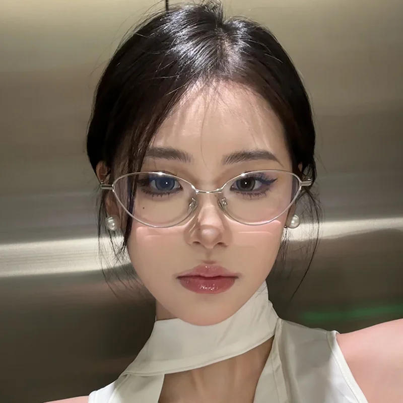 New Fashion Glasses Frame Men Women Ultralight Ellipse Metal Frame Anti Blue Light Transparent Lens Optical Eyeglasses