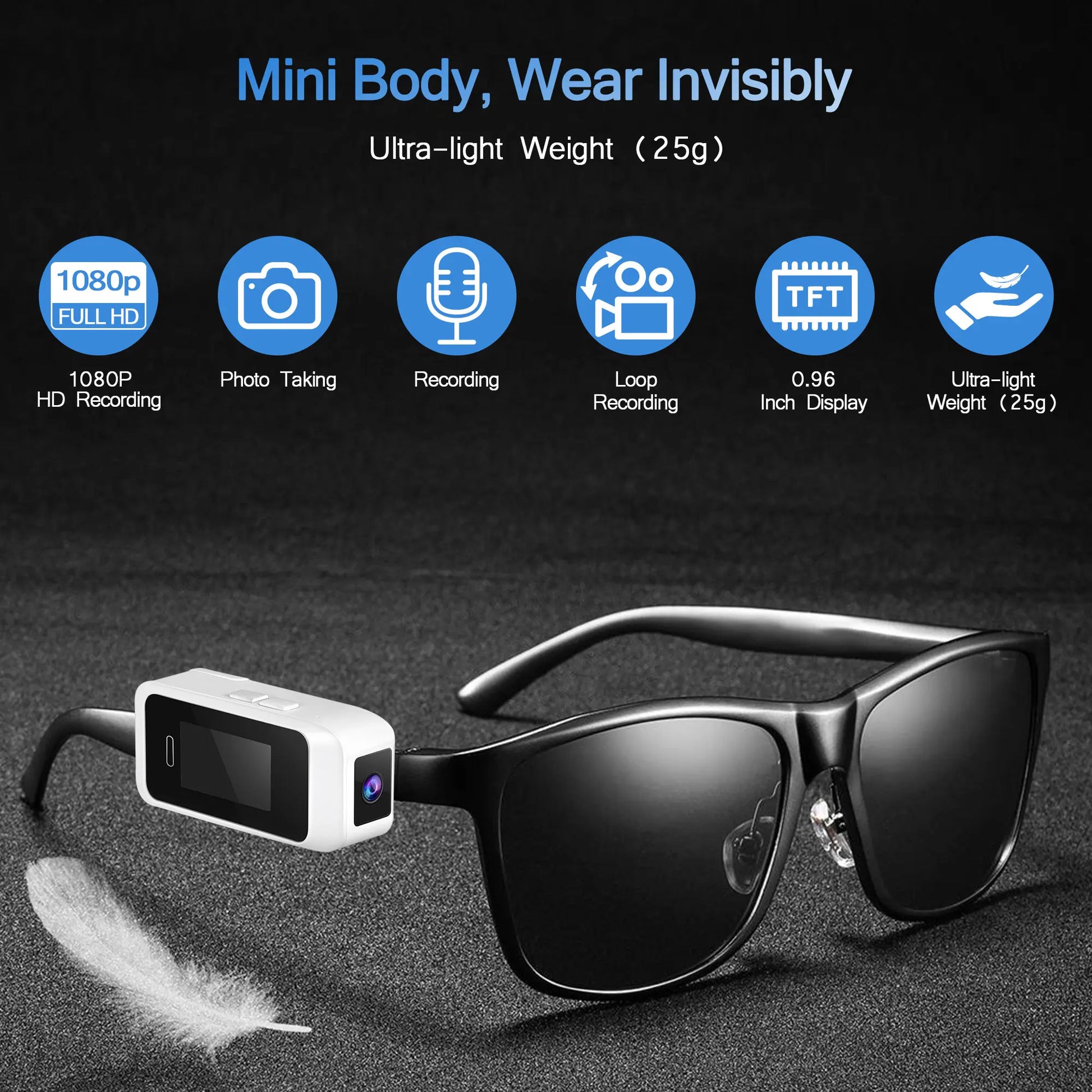 NEW Glasses Wearable Mini Pocket Camera 1080P Portable Digital Video Recorder Body Camera Head Mounted Miniature Camcorde Screen