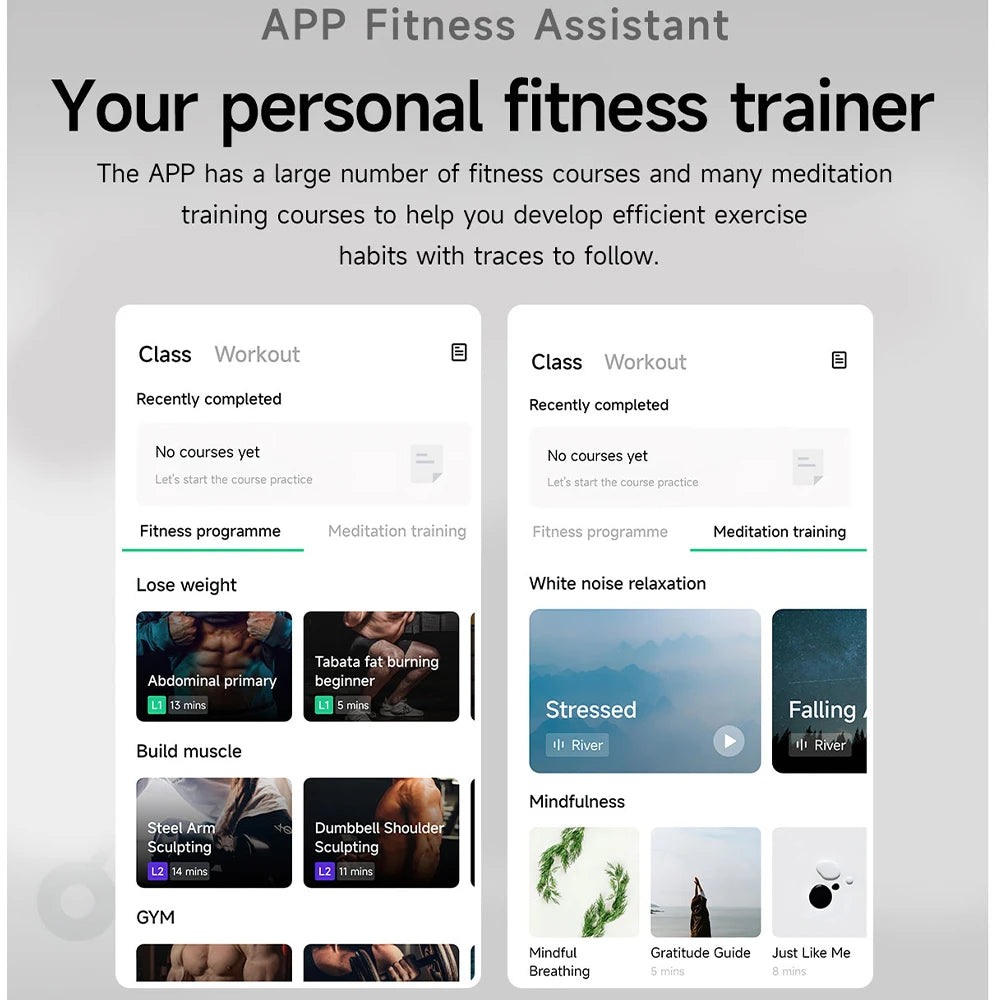 107 Sport Modes (Walking, running, outdoor riding, rope skipping, basketball, basketball, climbing, tennis, rugby, golf, yoga, fitness, dancing, baseball, hiking, indoor cycling, free training, skiing, bowling, dumbbell training, Sit-up, hiking, indoor walking, indoor running, cricket, Kabaddi, GPS walking, GPS running, GPS outdoor cycling, GPS Cross country running, GPS hiking, sailing, rock climbing, skateboarding Roller skating, cool running, Dune buggy, Paragliding, triathlon, climbing machine, stair climbing, treadmill, core training, flexibility training, Pilates, gymnastics, stretching, Strength training, cross training, aerobics, physical training, squash, barbell training, hard pulling, upper limb training, functional training, bobby hop, back training, lower limb training, High-intensity interval training, weight lifting, square dance, Belly dance, ballet, Zumba Latin dance, hip-hop dance, folk dance, Jazz dance, boxing, wrestling, martial arts, Tai Chi, Thai boxing, judo, Taekwondo, Karate, free combat, fencing, fencing/kendo, volleyball, softball, hockey, table tennis, handball, squash, billiards, shuttlecock, beach volleyball, Beach soccer, rattan, skating, curling, snow sports, snowmobiling, ice hockey, sledge, archery, darts, tug of war, hula hoop Kite flying, horse riding, frisbee, fishing, equestrian, track and field, racing) GPS motion trajectory function in the APP