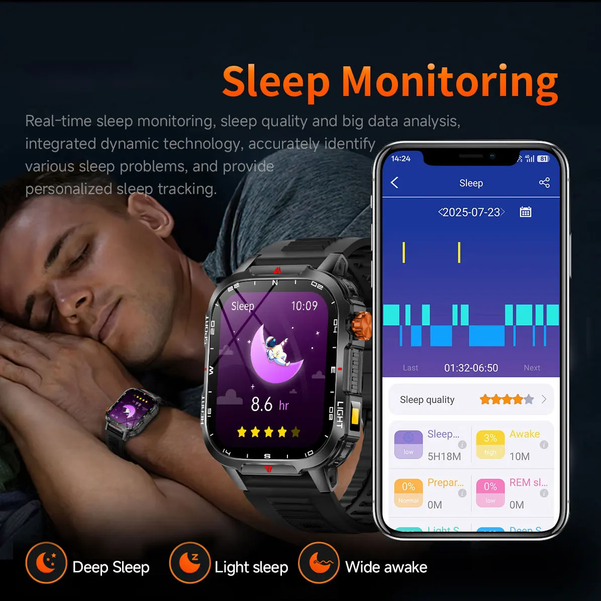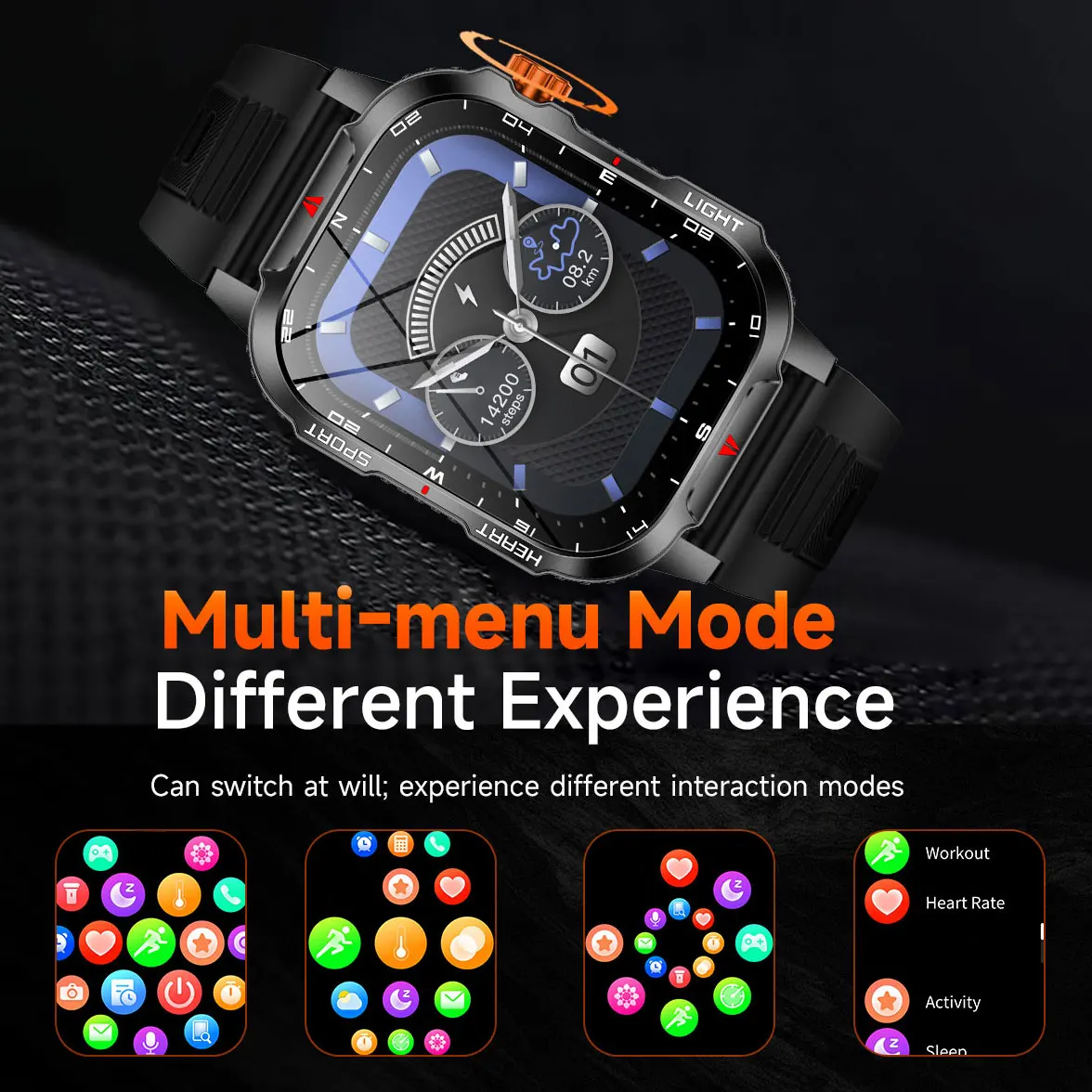 New men's smart watch For xiaomi with flashlight Bluetooth phone built-in compass 1100mAh large-capacity battery video DIY dial