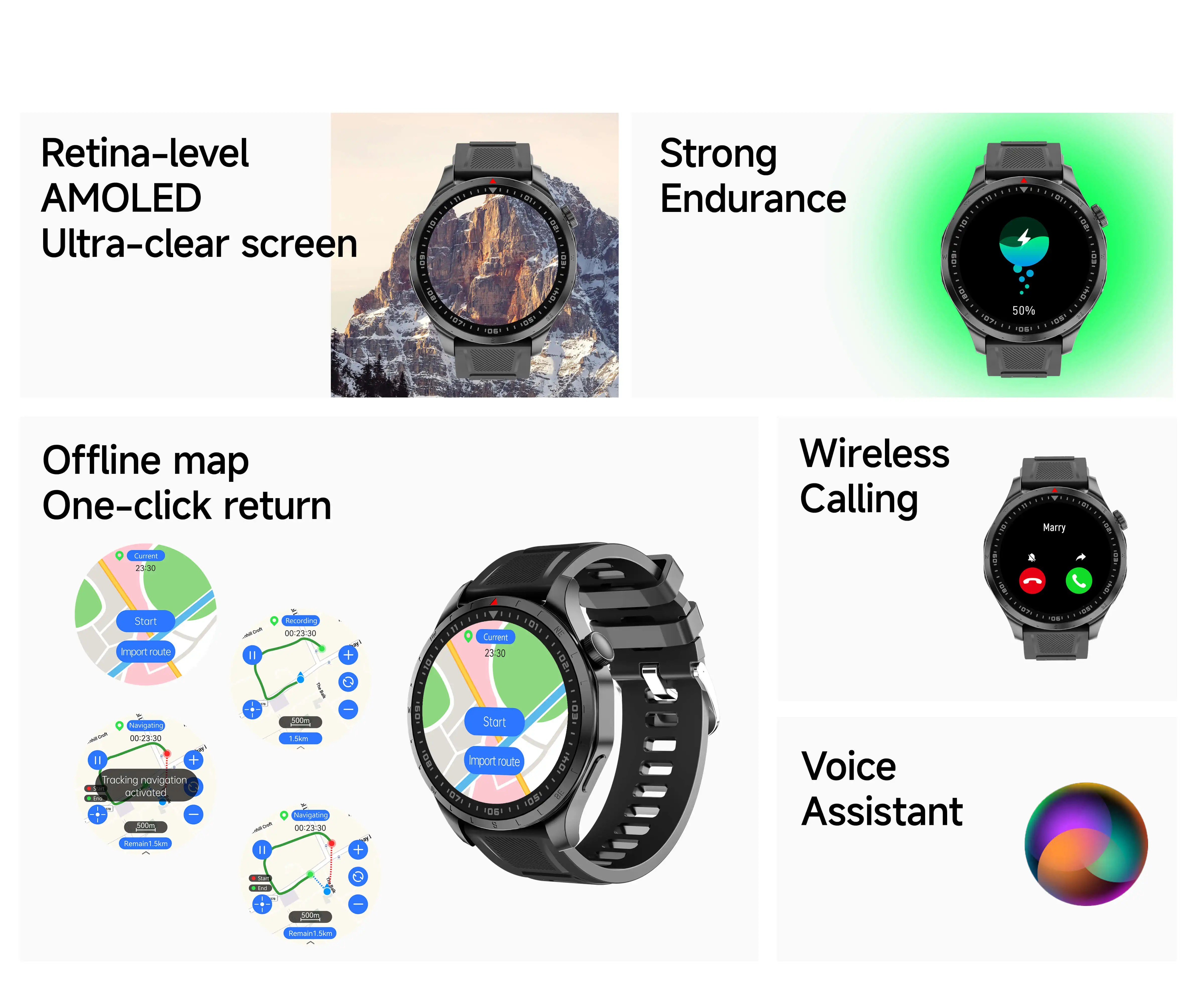 New Military Smartwatch GPS Offline Map Health Monitor Voice Assistant AMOLED Waterproof BT Call Sport Smart Watch For Man Women