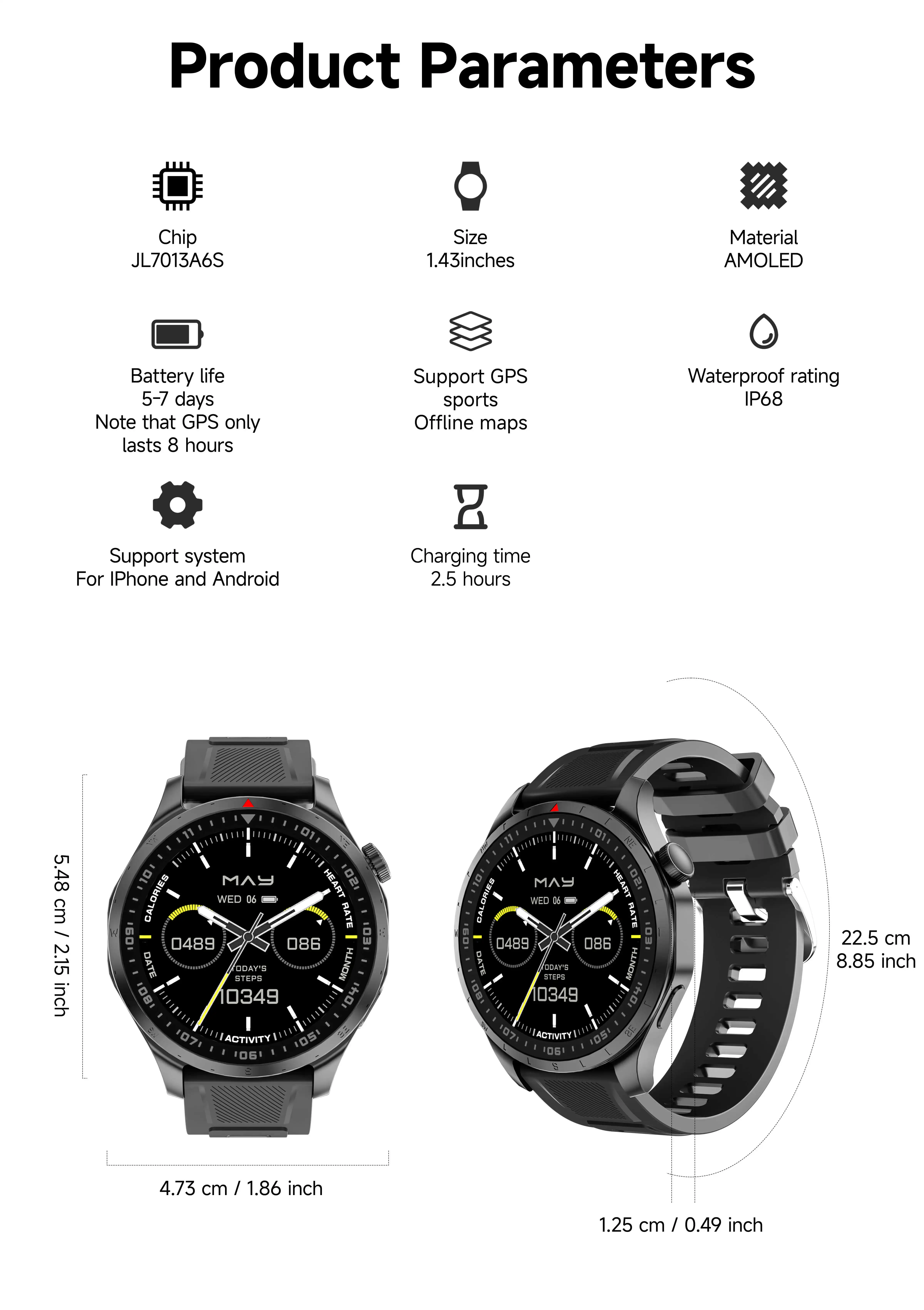 🍒GPS sport watch:Light weight GPS sports watch touch body GPS positioning, support offline map.