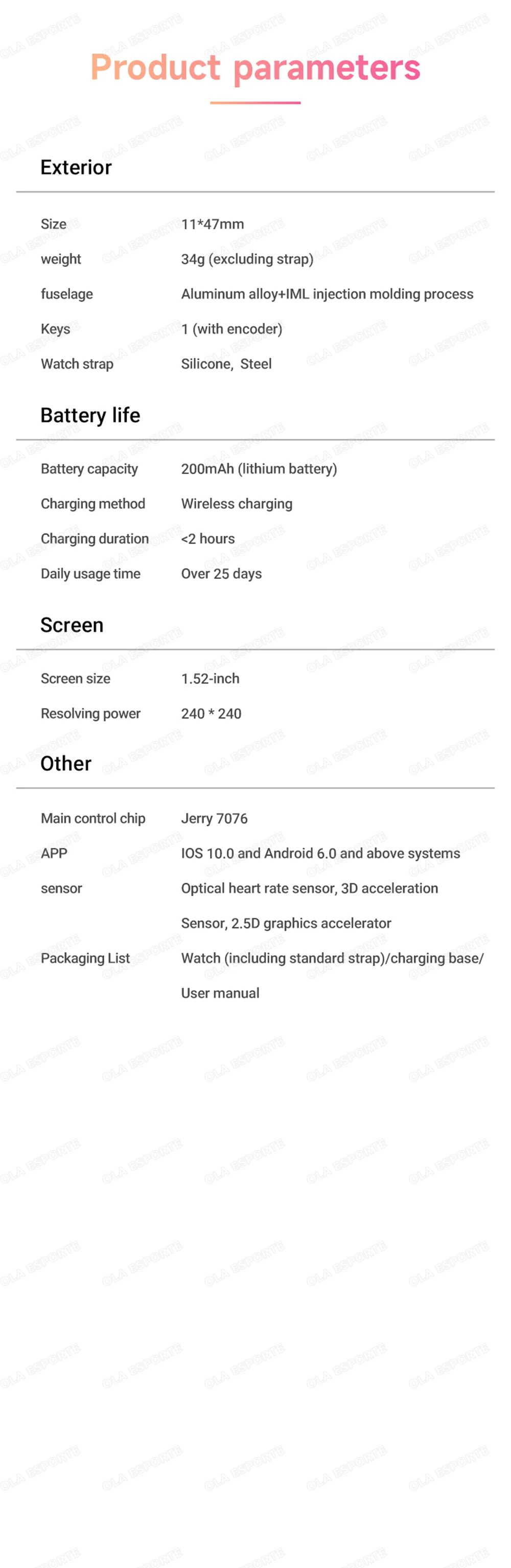 Intelligent reminder and voice control: With functions such as intelligent reminder and voice control, it makes your life more convenient. For example, it can vibrate to remind you when there are incoming calls, text messages, or social media notifications, and the watch can be operated through voice control.