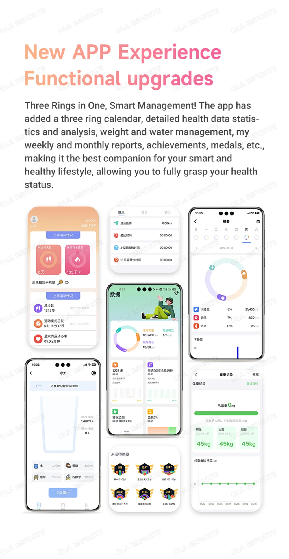 Health monitoring: It can track users' real-time health data such as heart rate, blood oxygen saturation, sleep quality, and exercise volume, helping you better understand your physical condition.