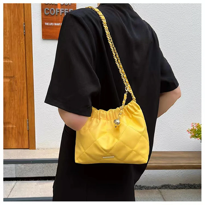 New Soft Leather Large Capacity Fashion Pleated Bag Chain Bag Single Shoulder Bag Crossbody Bag Handbag Casual Bag Drawstring Gift for Girlfriend