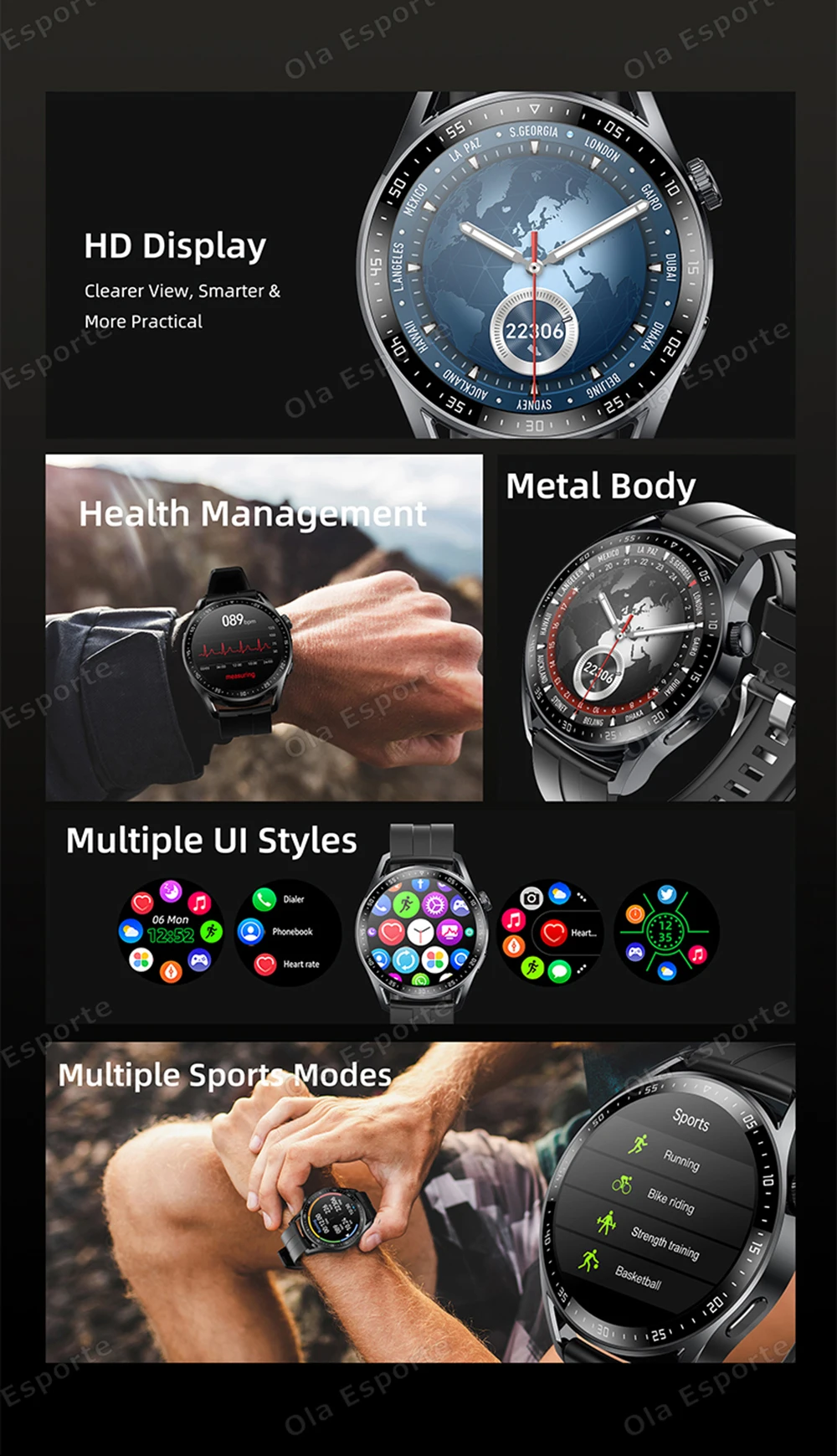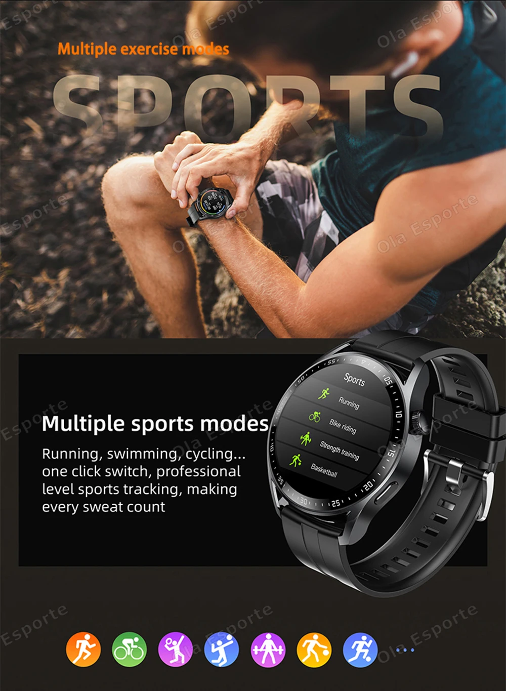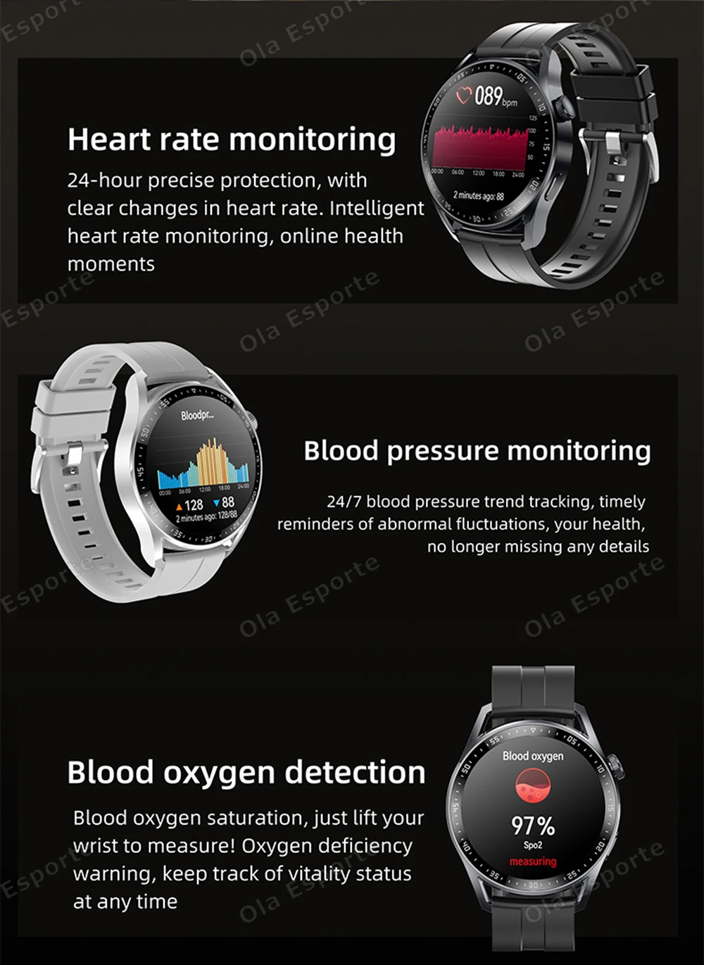 1.The principle of olaesporte smart watch measurement is completely different from that of medical equipment. It is only for sports and fitness reference, thank you.