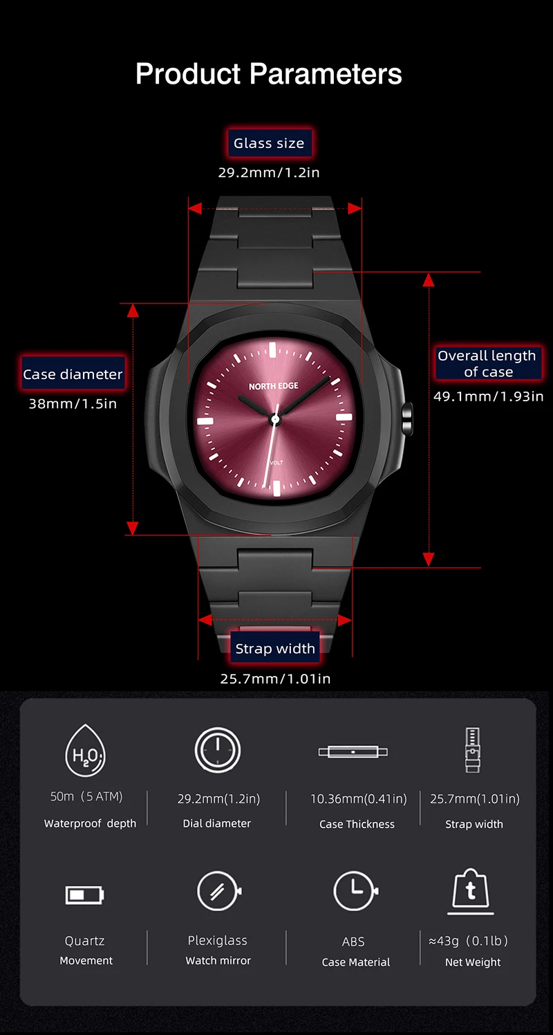 NORTH EDGE VOLT New Smart Watch Men Digital Watch Sports Swimming Fashion Simple Light Square Watch For Men Women Waterproof 50M