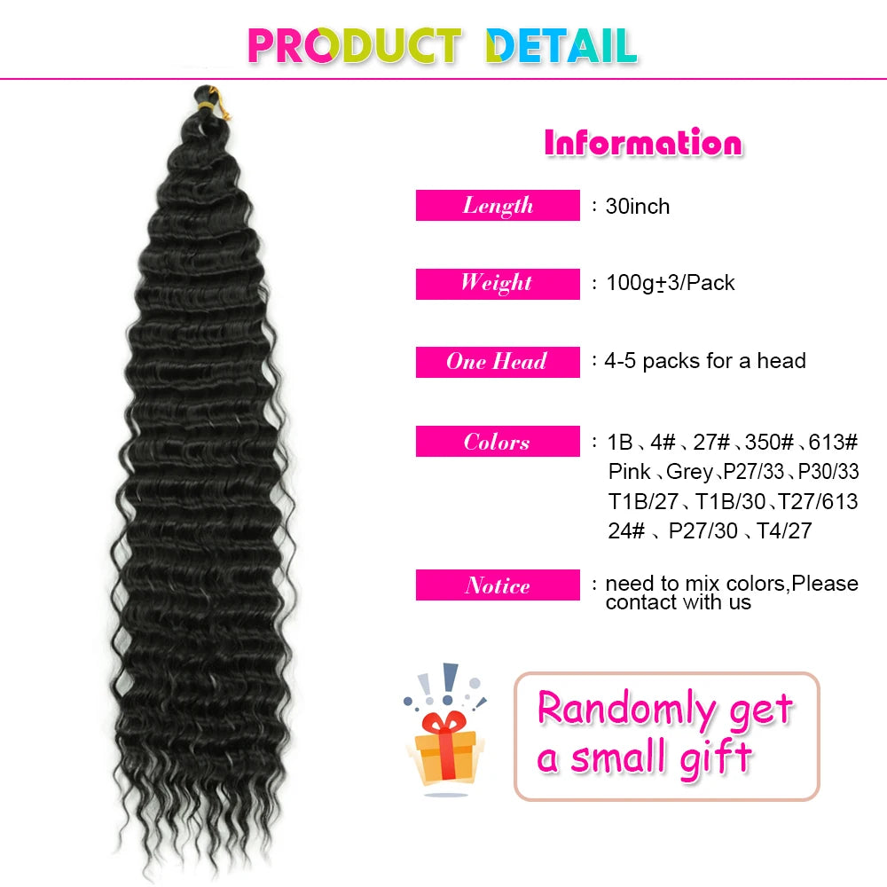 Ocean Wave Crochet Hair Extensions 30Inch Synthetic Deep Twist Curly Crochet Braids Soft Bohemian Water Wave Braid Hair