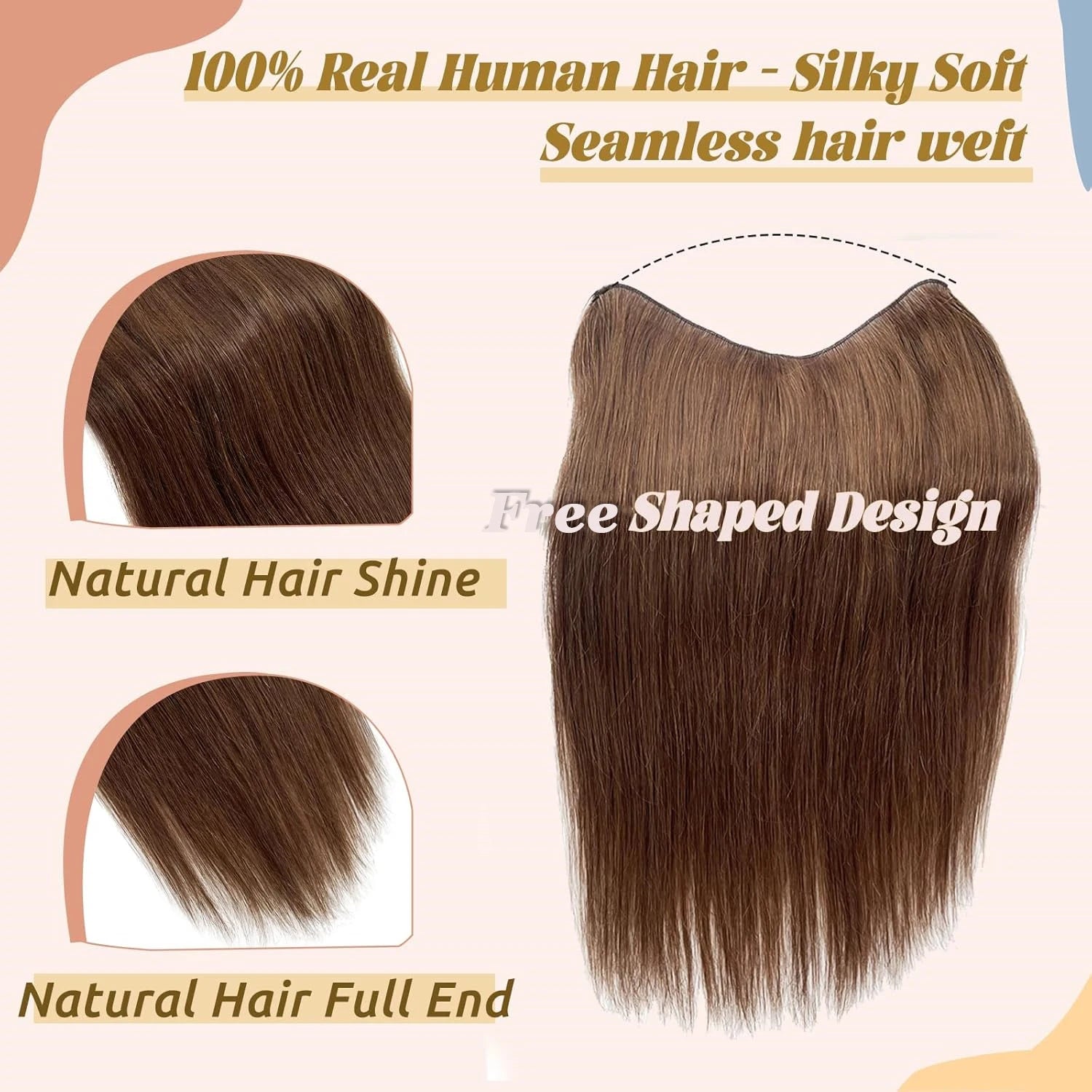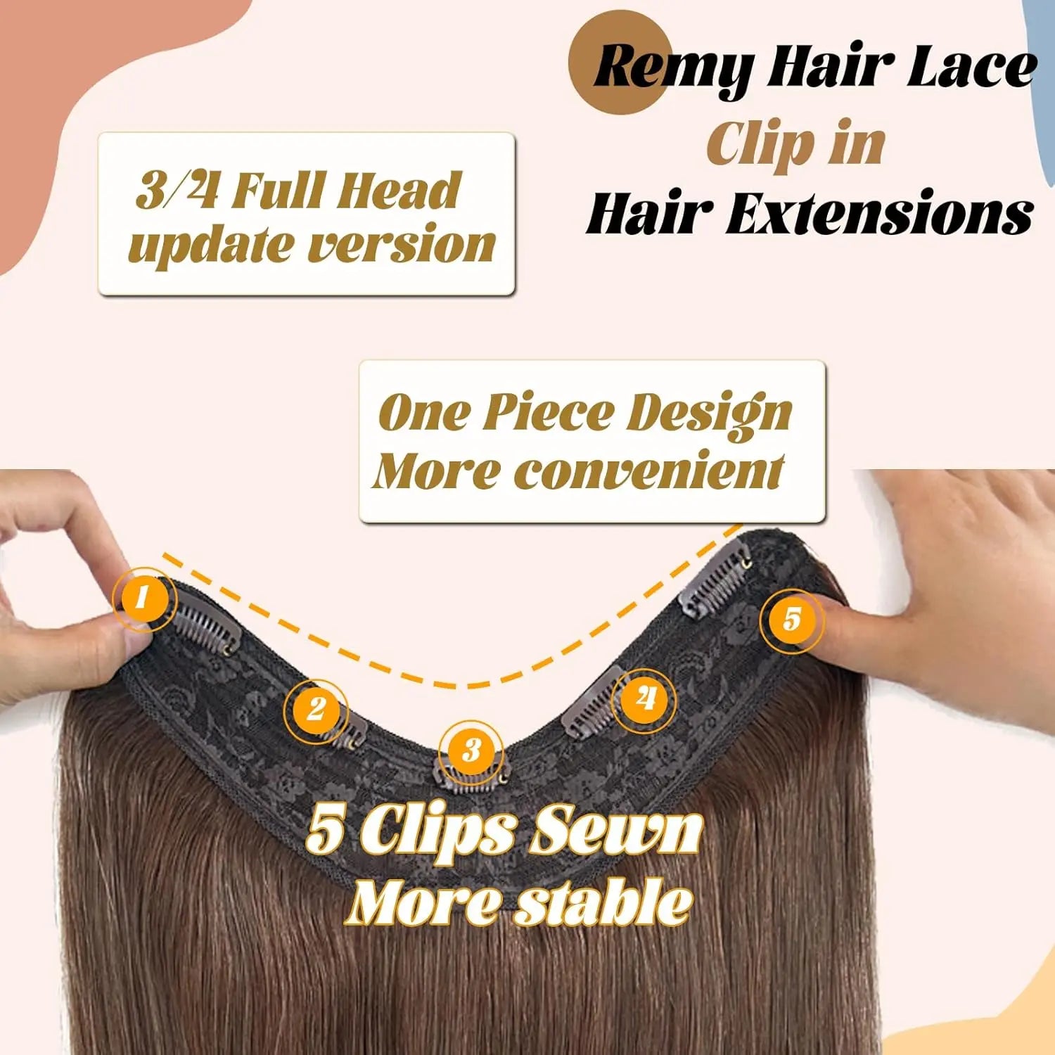 One-Piece Clip In Human Hair Extensions 1 Piece 5 Clips 3/4 Full Head #4 Medium Brown Straight Clip In Human Hair Extensions