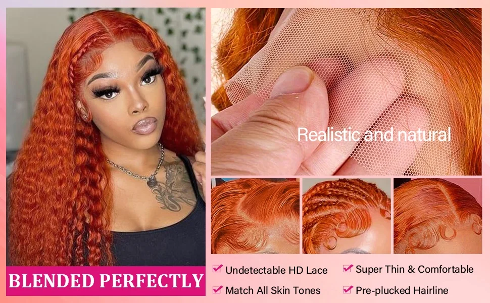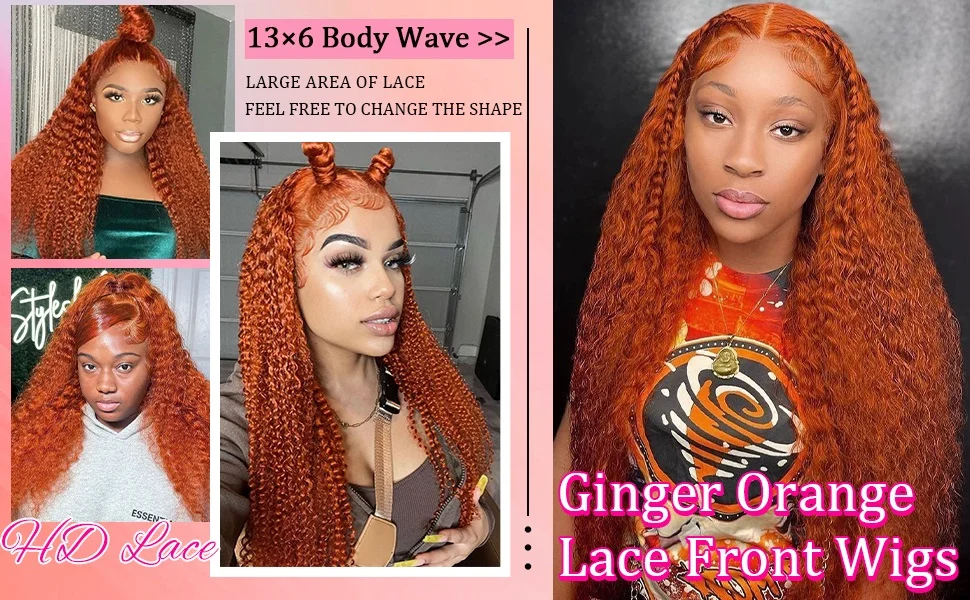 Orange Ginger Lace Front Wig Human Hair 30 40 44 Inch Deep Wave Pre Plucked Curly Wigs 13x4 13x6 Hd Lace Frontal Wig For Women