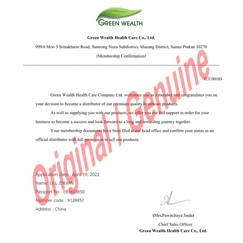 Yes, this is the 100% original product produced by Thailand Green Wealth Company, our Thailand authorization certificate, you can also scan the QR code to verify the authenticity of the product.