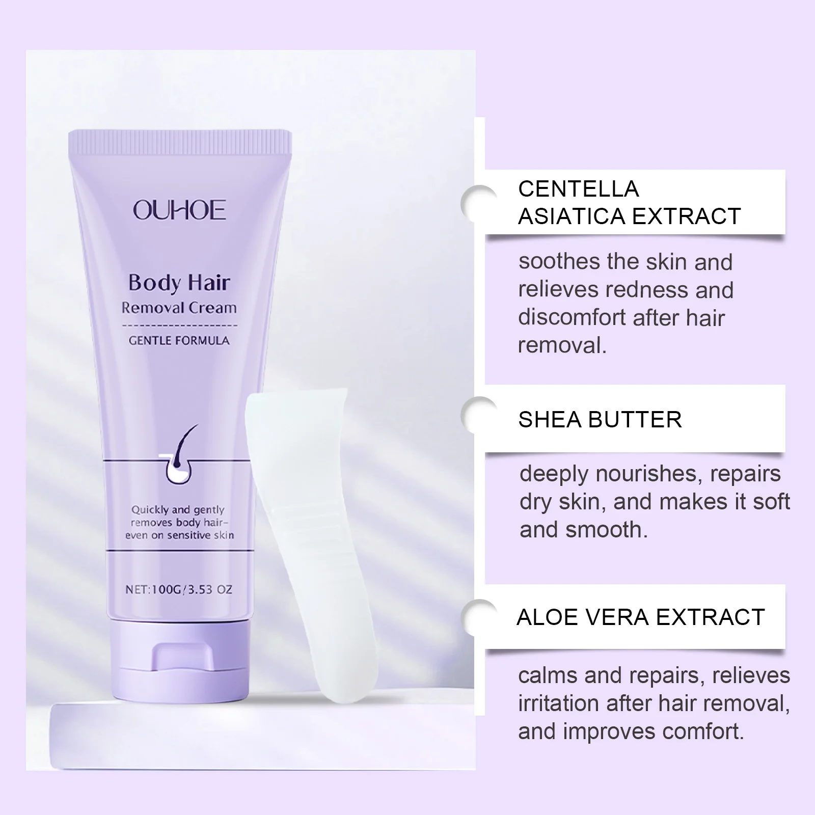 OUHOE Body Hair Removal Cream Gentle Painless Long-Lasting Smoothness Nourish Moisturize Convenient Efficient Aloe Vera Soothing