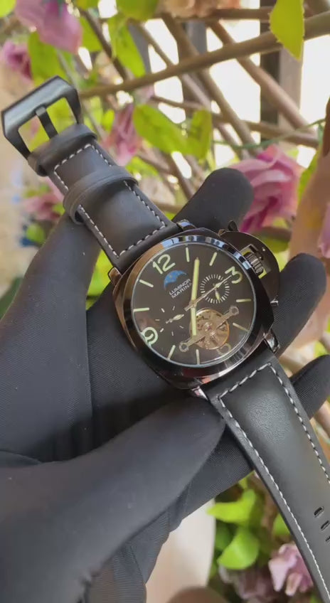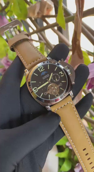 Experience precision and elegance with the Panerai Automatic Gents Watch, featuring a sophisticated tourbillon and chronograph functions. Crafted with premium leather straps and powered by automatic movement, this watch offers durability and seamless timekeeping. Its water-resistant design ensures reliability in various conditions. Personalize your timepiece with our expert engraving services for a truly unique accessory.