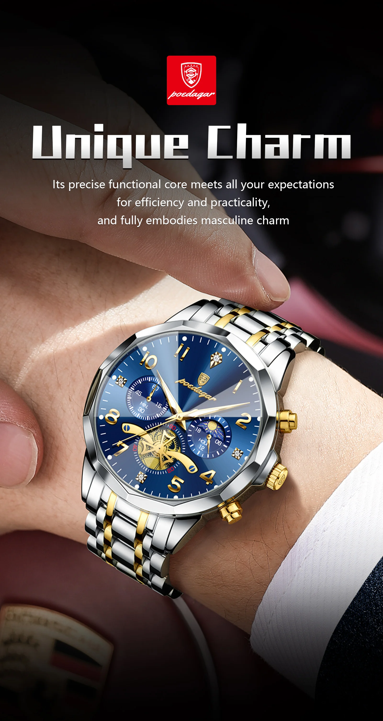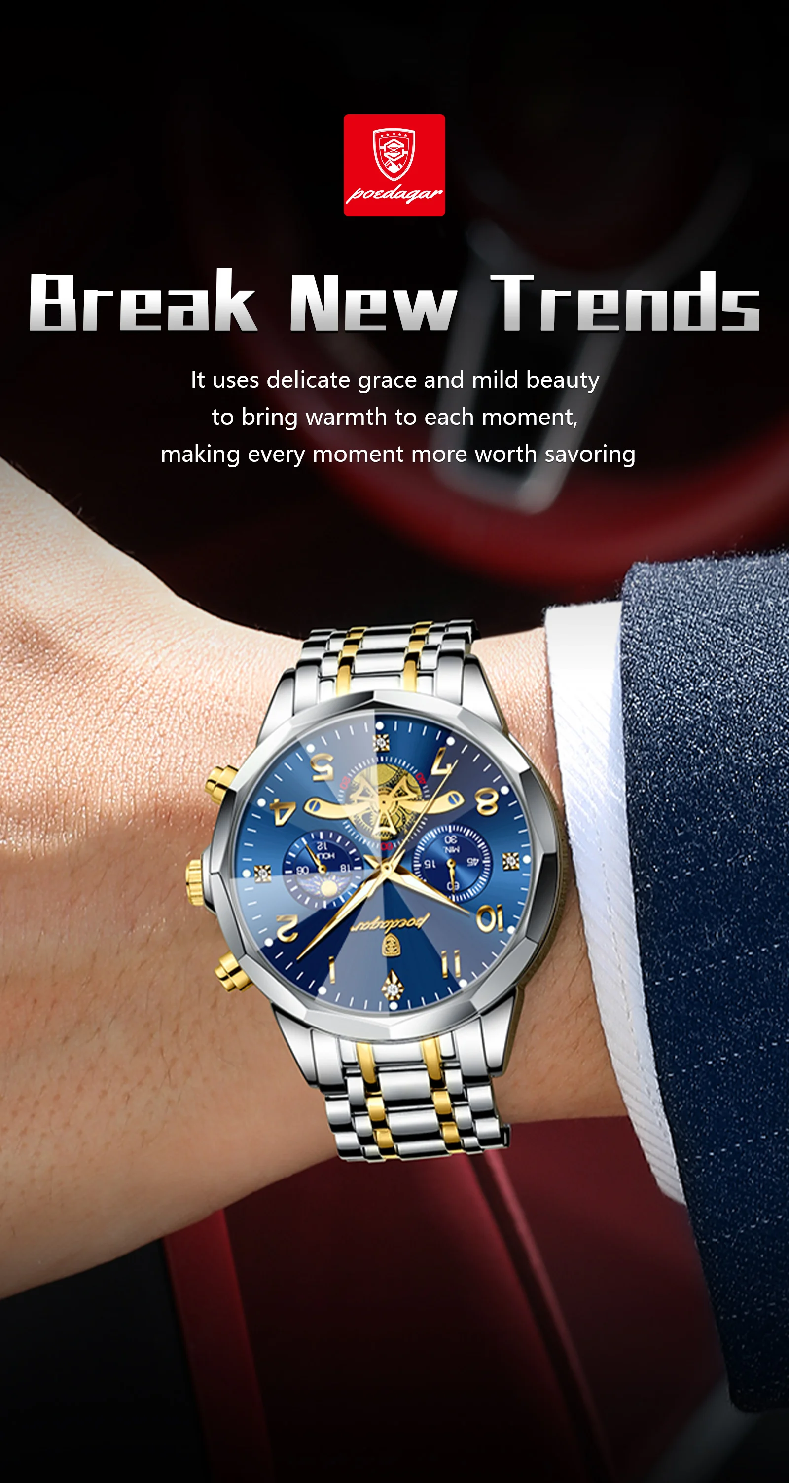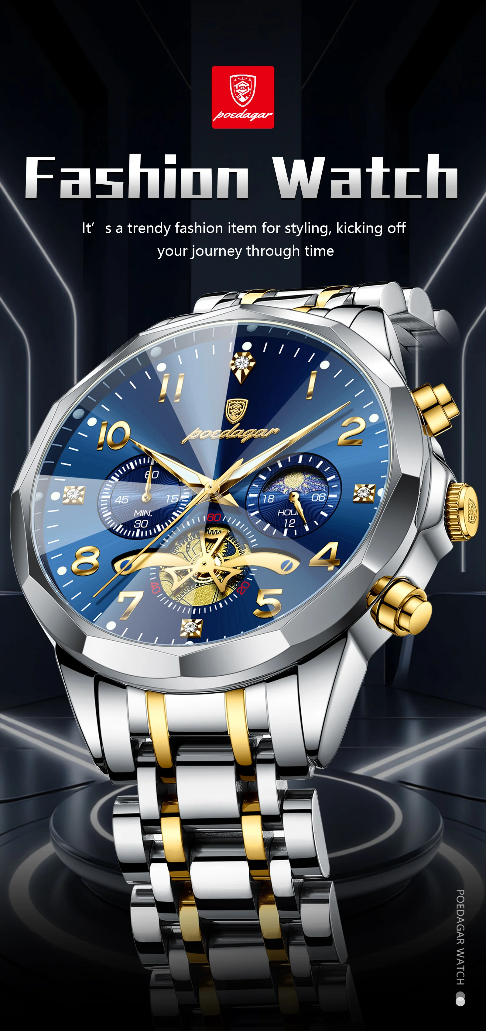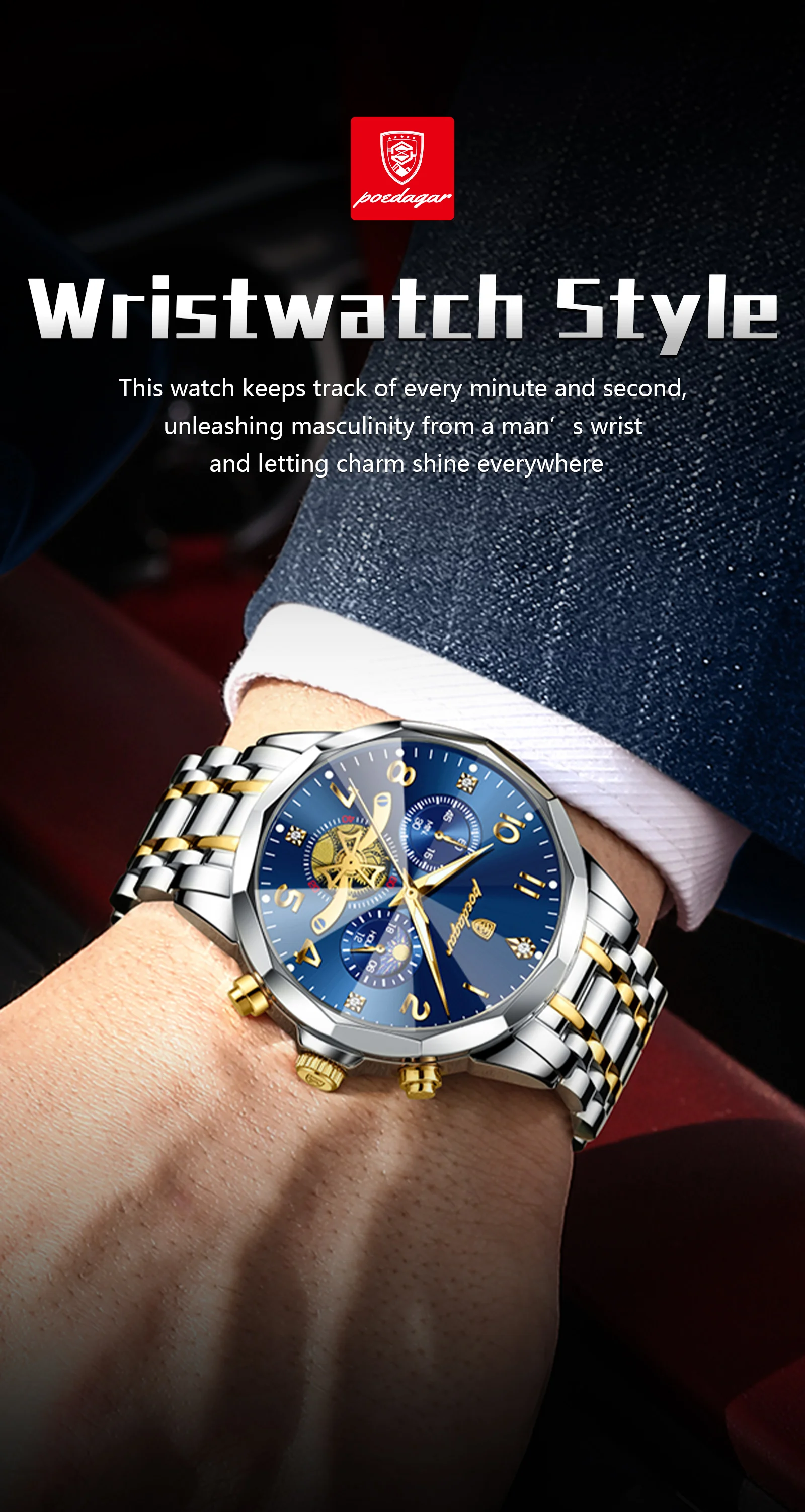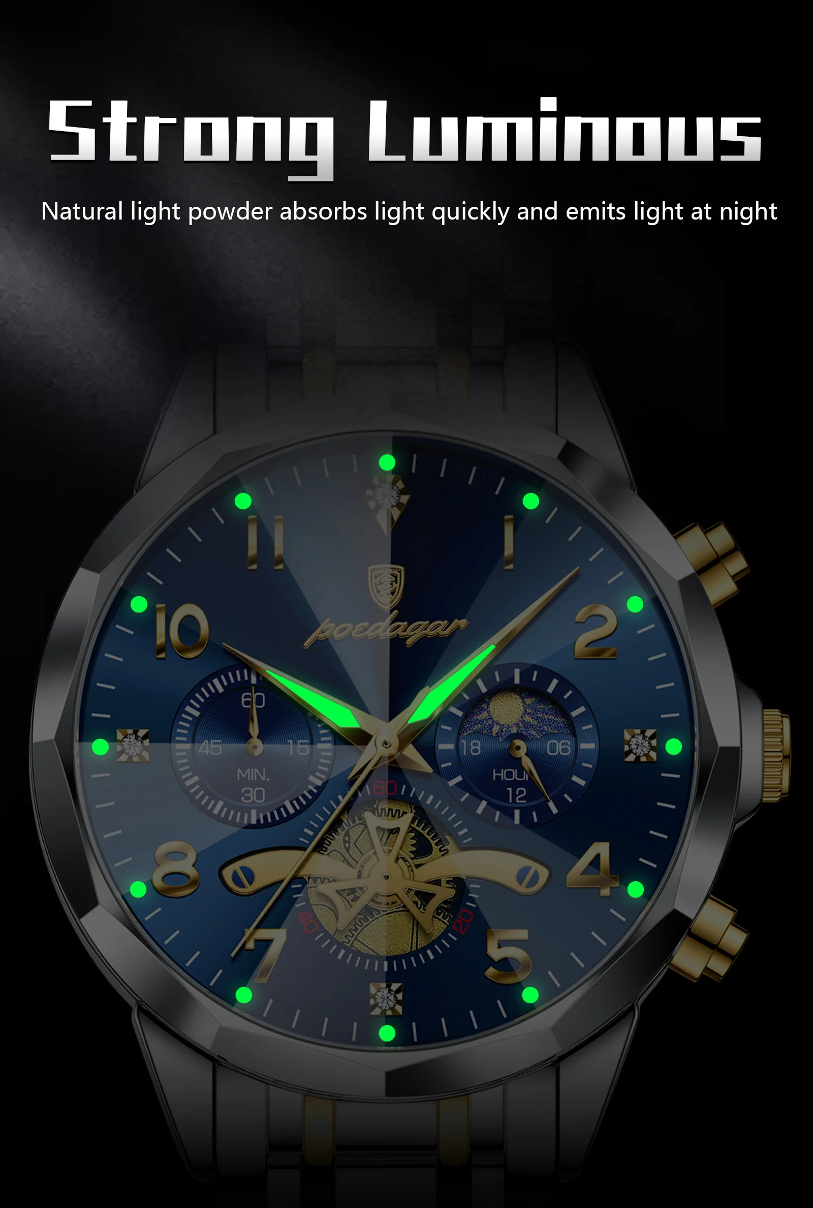 POEDAGAR Luxury Original Watch For Man Chronograph Waterproof Luminous Men Clock Quartz Stainless Steel Men's Watches Male Reloj