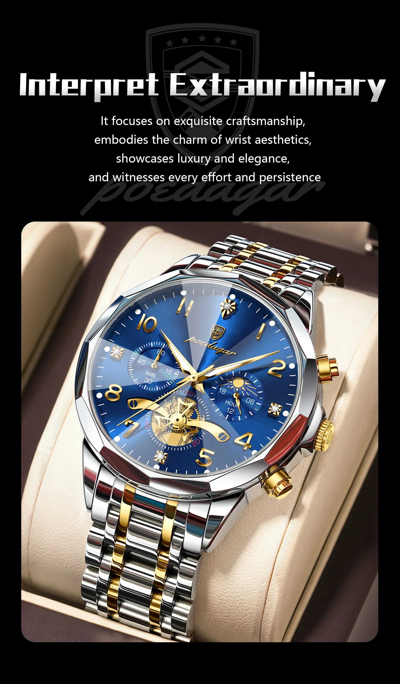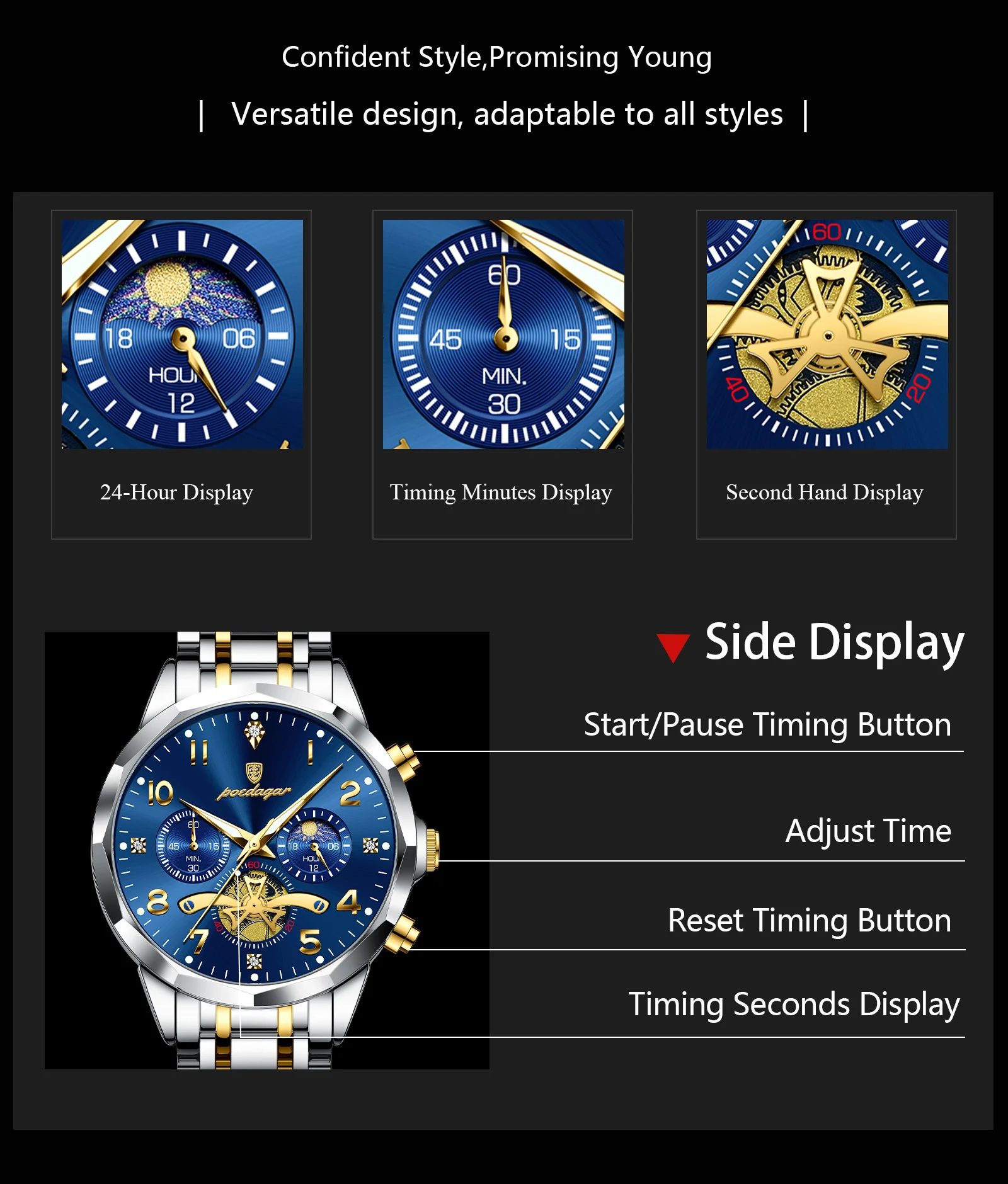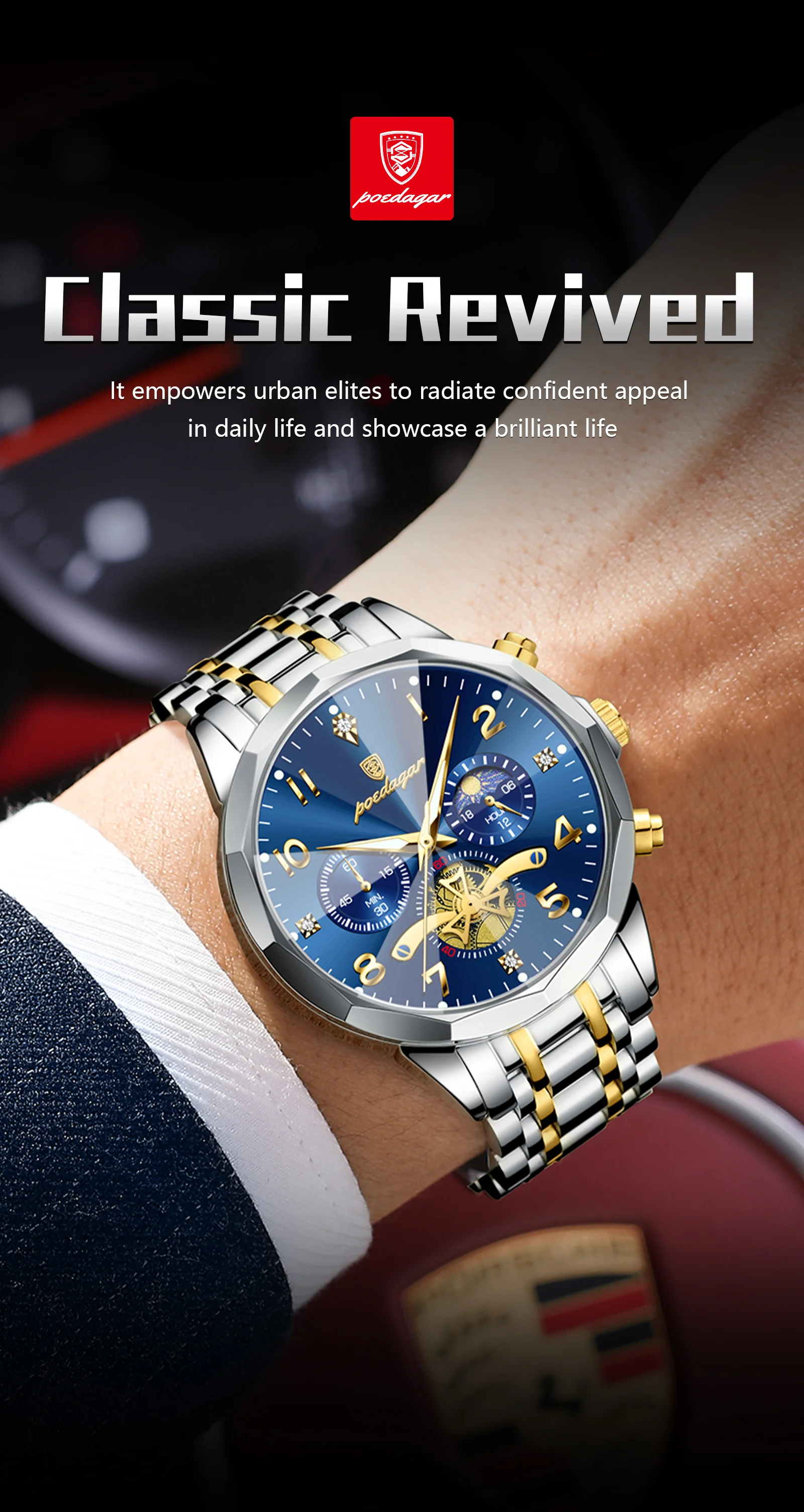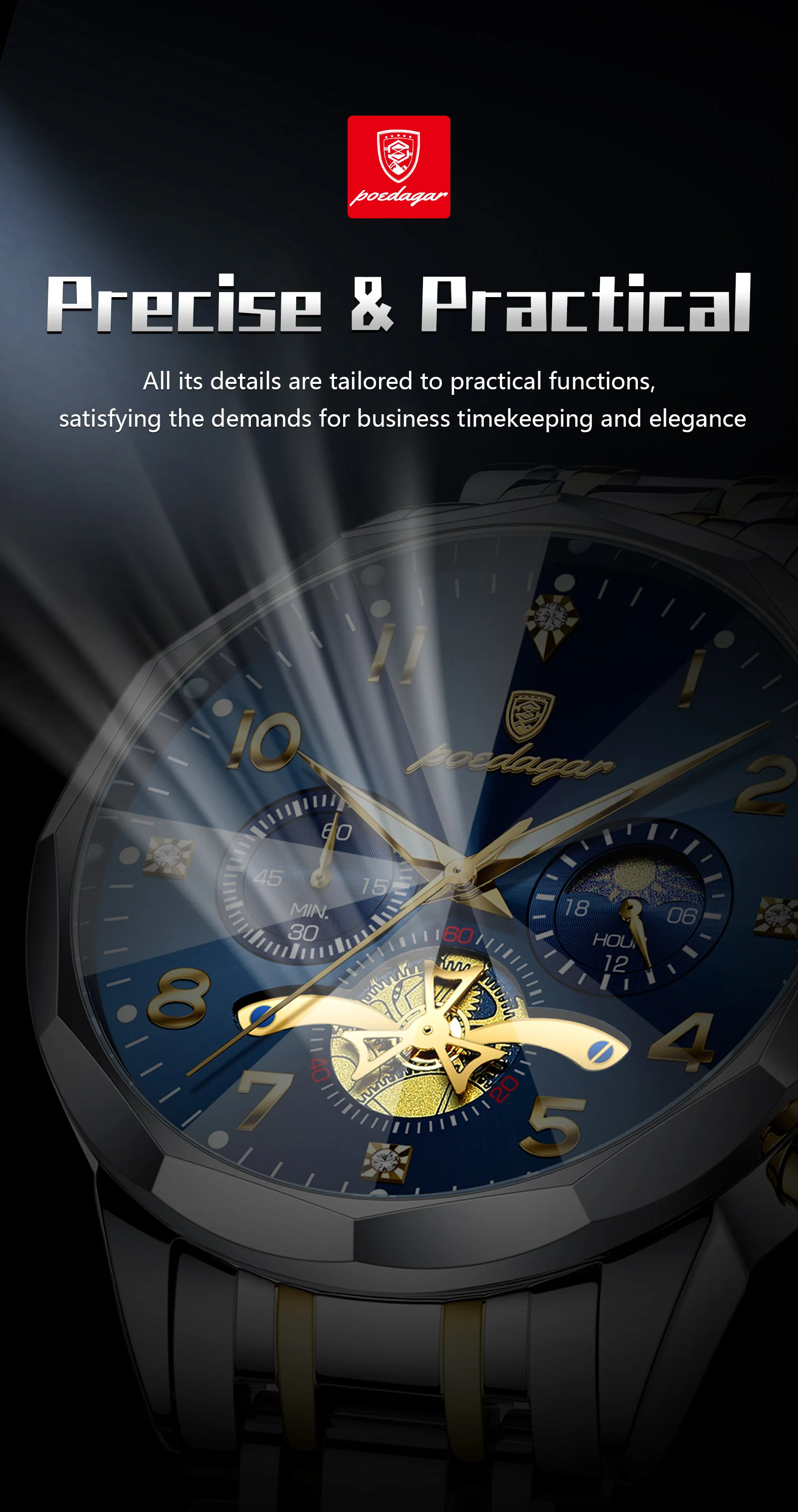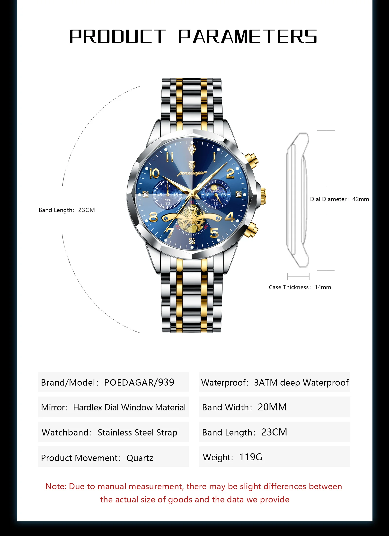 POEDAGAR Luxury Original Watch For Man Chronograph Waterproof Luminous Men Clock Quartz Stainless Steel Men's Watches Male Reloj