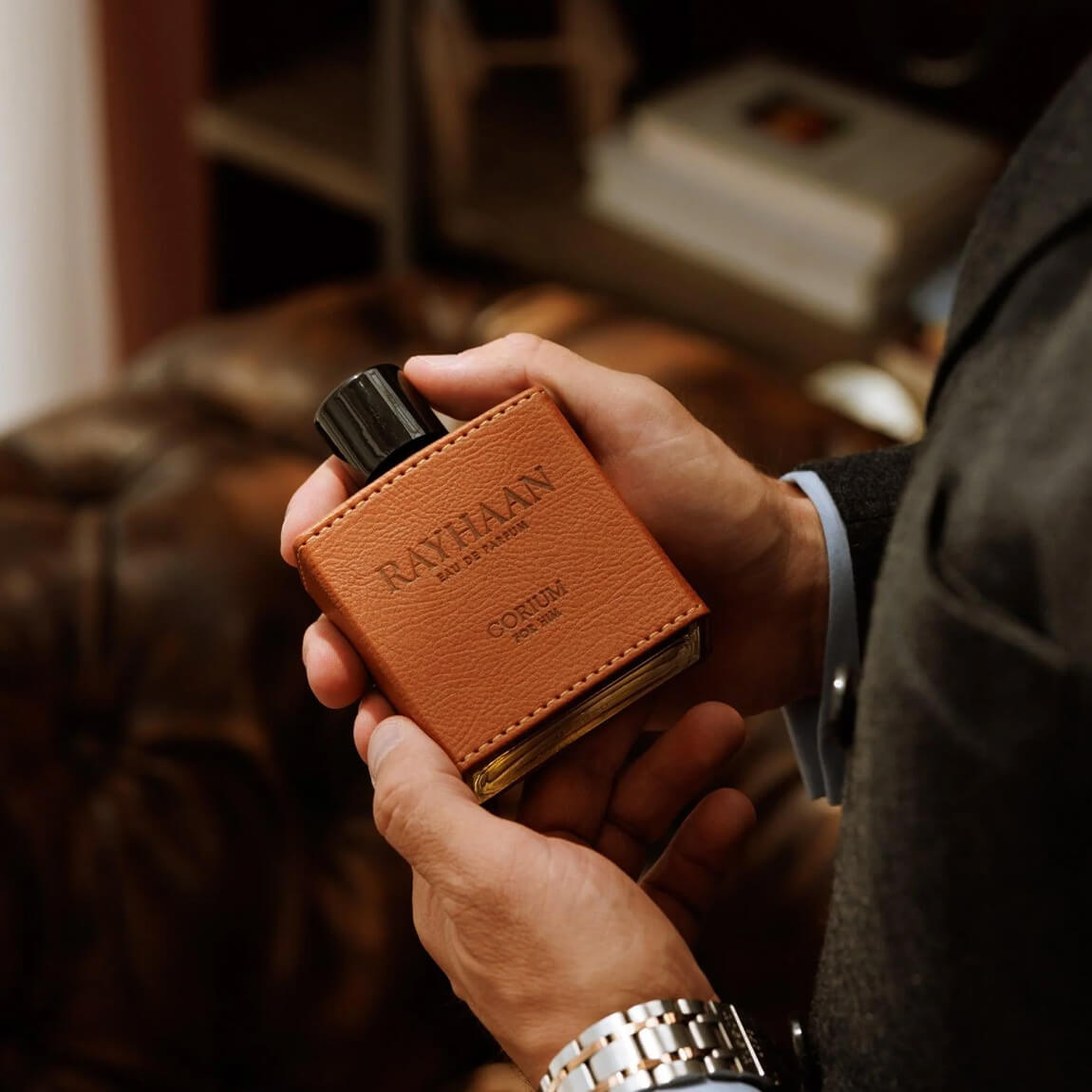 RAYHAAN CORIUM, a fragrance crafted for the man who thrives on strength, confidence, and timeless charm. This bold scent opens with a sparkling blend of chestnut, warm spices, and resinous elemi, igniting the senses with energy and depth. This fragrance settles into a rich, commanding base of vanilla, oud accord, guaiac wood, and leather, leaving behind a sensual trail that’s both elegant and unforgettable. Designed for the man who dares to defy convention, Corium is a symbol of power, risk-taking, and irresistible allure.