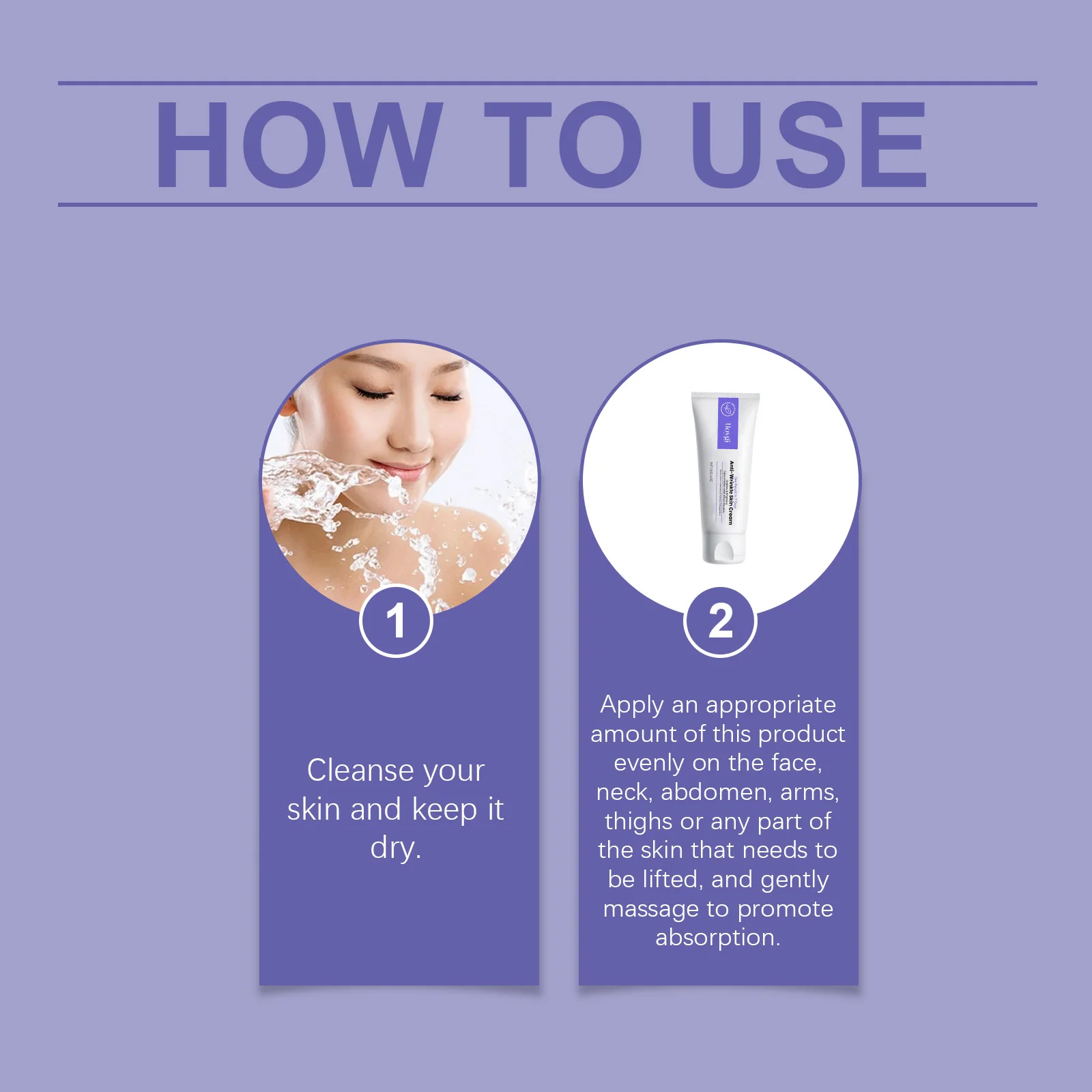 2. Apply an appropriate amount of this product evenly on the face, neck, abdomen, arms, thighs or any part of the skin that needs to be lifted, and gently massage to promote absorption.