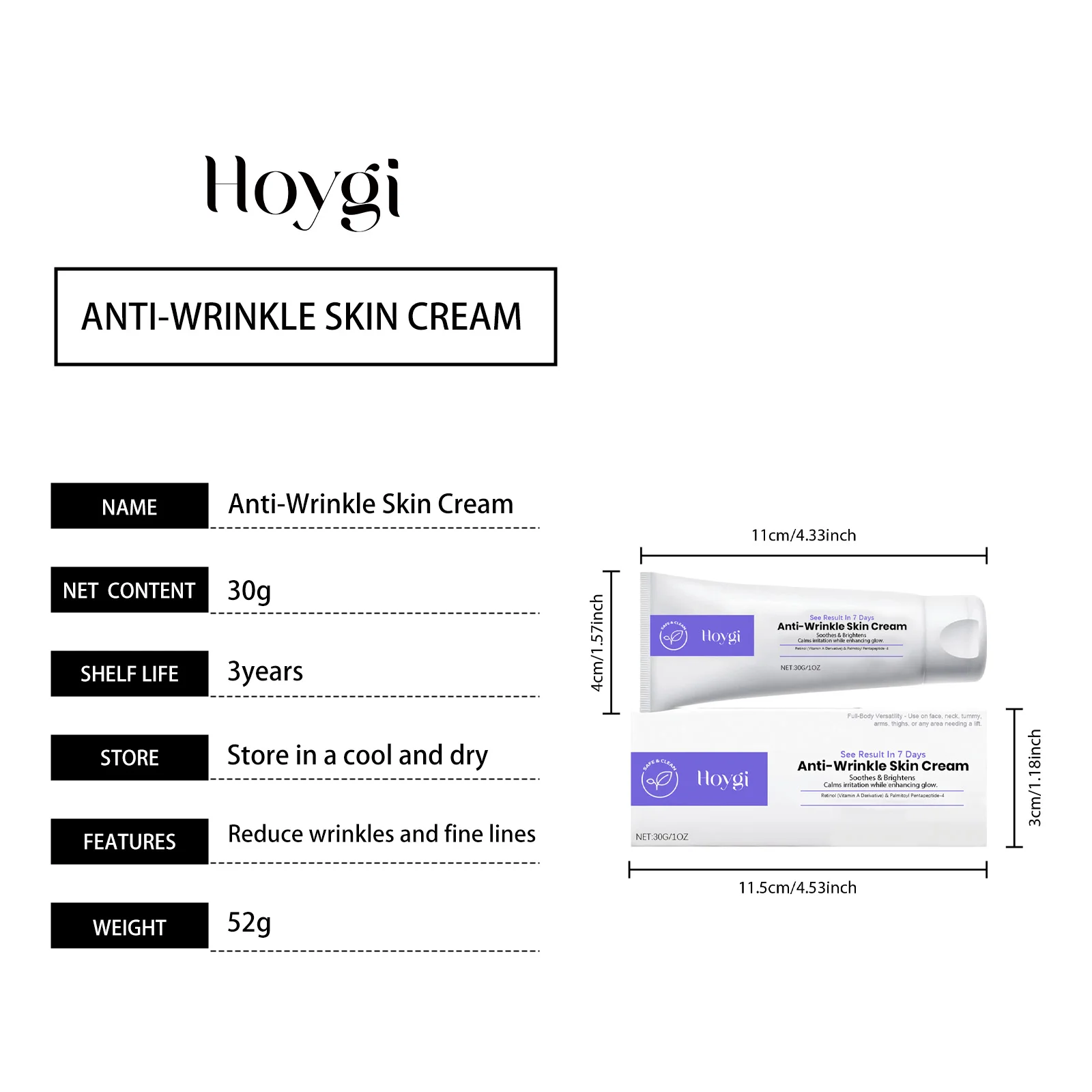 Hoygi Retinol Anti Wrinkle Cream Pores Shrinking Promotes Skin Elasticity Daily Hydrate Anti-Aging Tightening Firming Face Moisturizer 30g