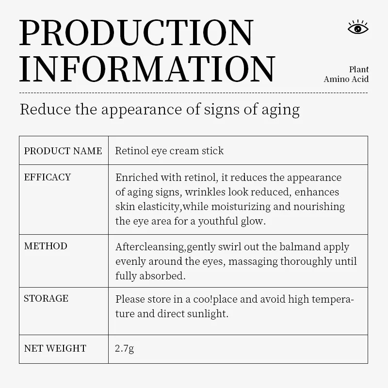 Retinol Eye Cream Dark Circles Eye Bags Removal Eye Cream Stick Firming Eye Cream Under Eye Serum Moisturizing Eye Skin Care