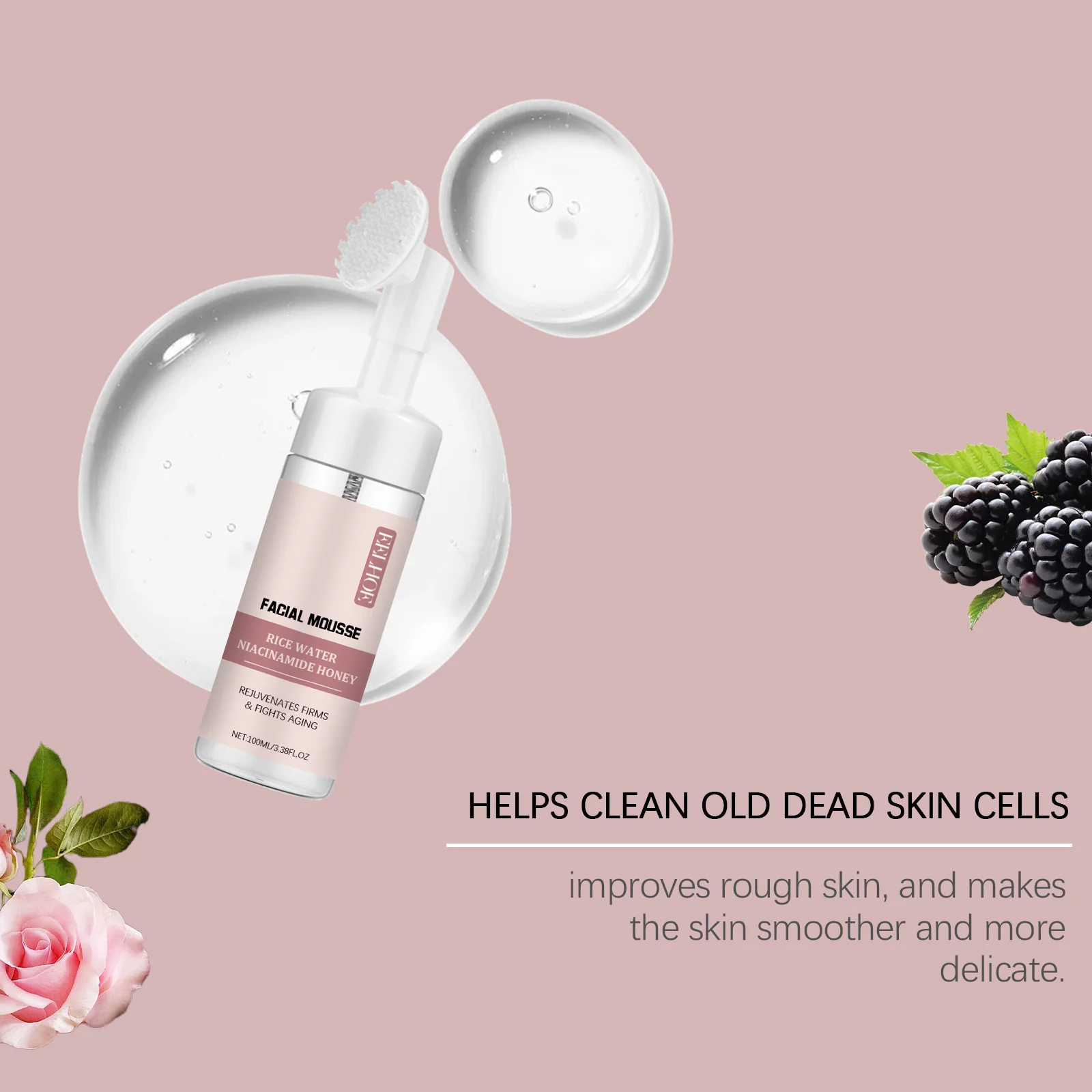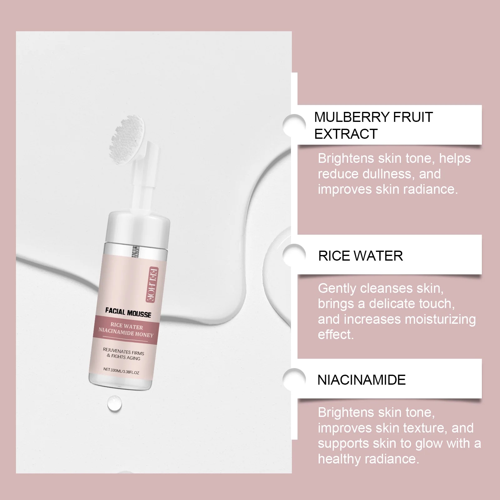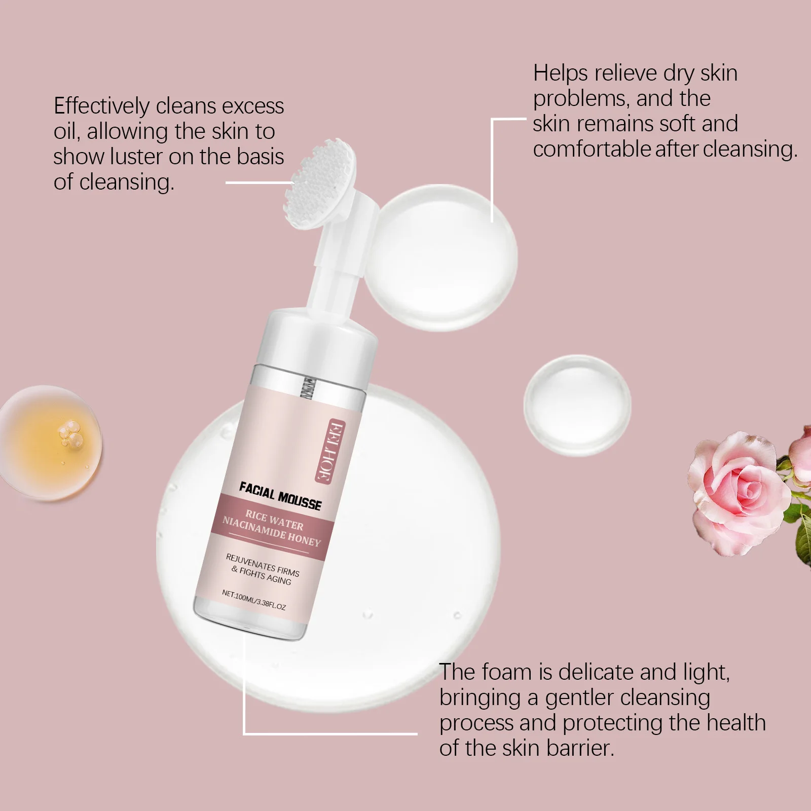 Rice Water Cleansing Mousse Oil Control Deep Cleaning Pores Moisturizing Brightening Soothing Rejuvenation Foam Face Wash Care