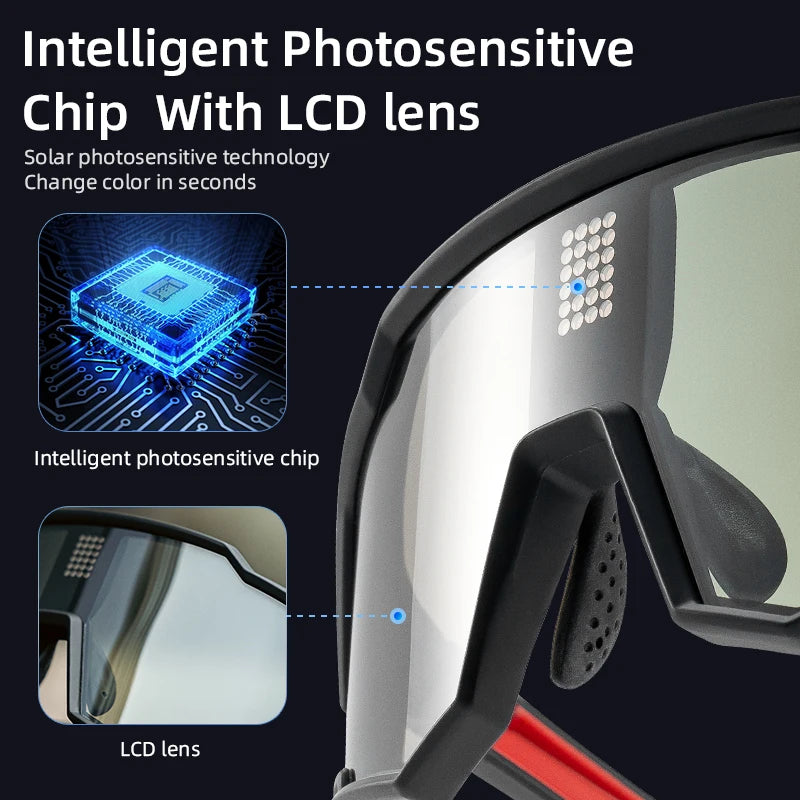 ROCKBROS Bicycle Sunglasses Polarized & Photochromic Electronic Color Change Cycling Glasses UV400 Bike Eyewear Sports Goggles