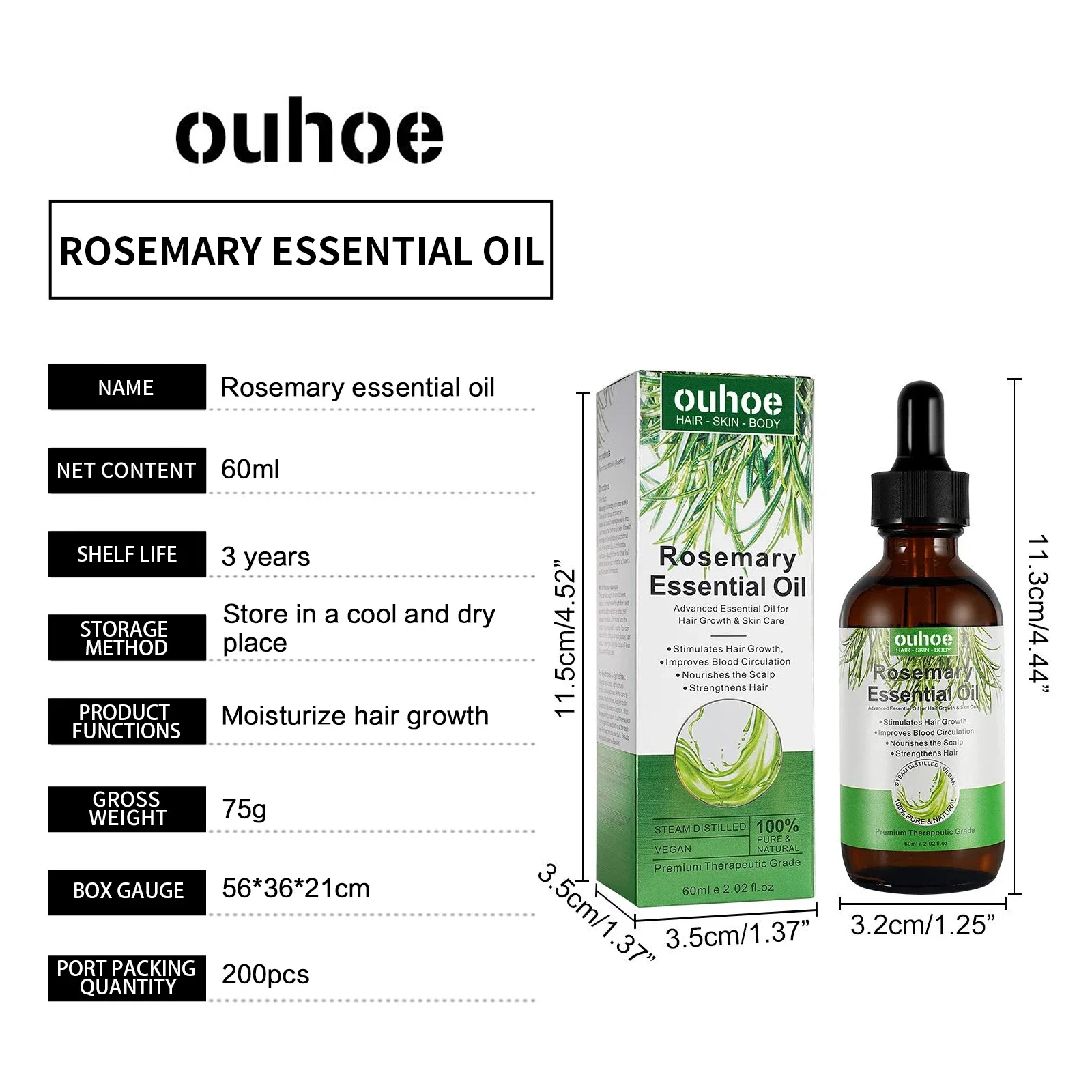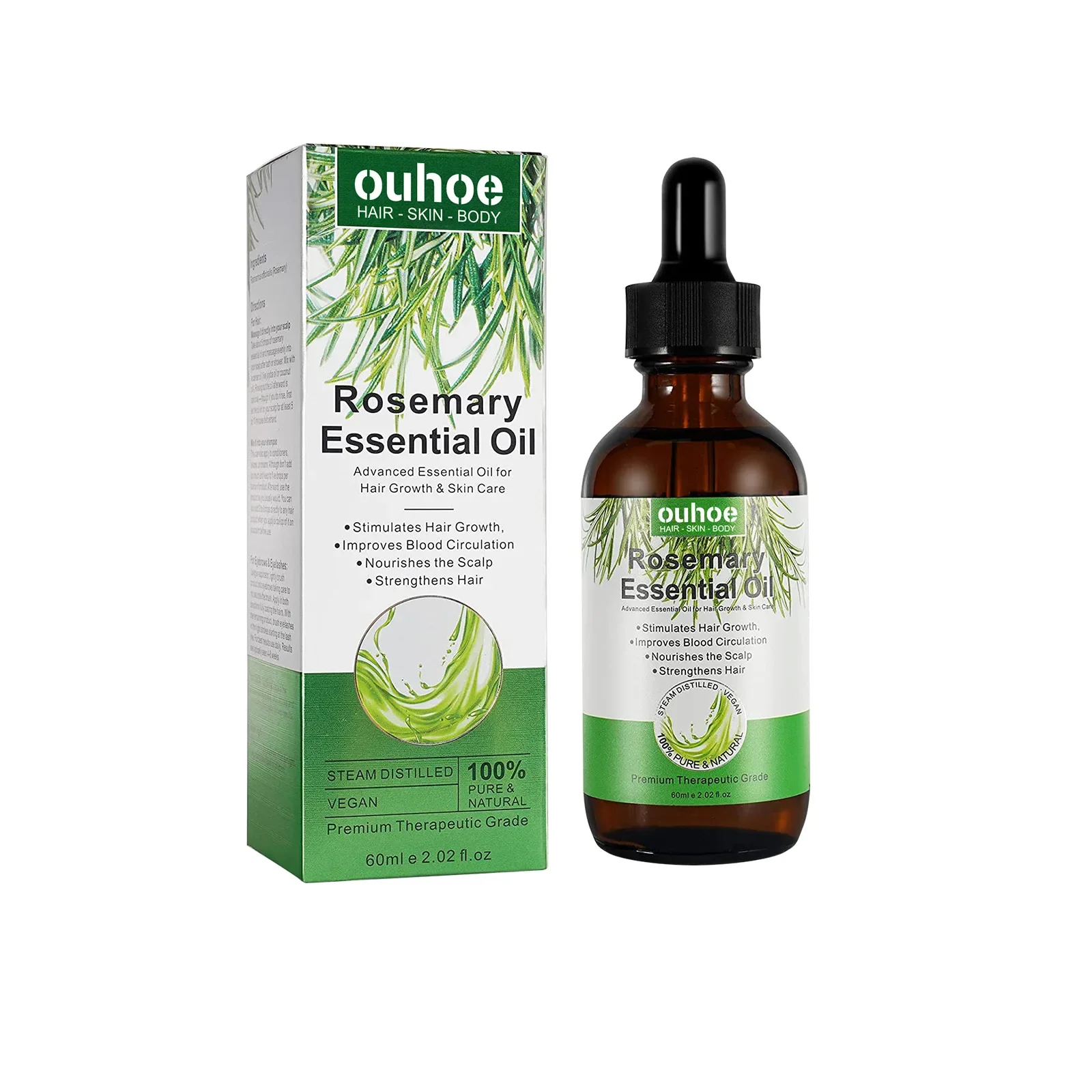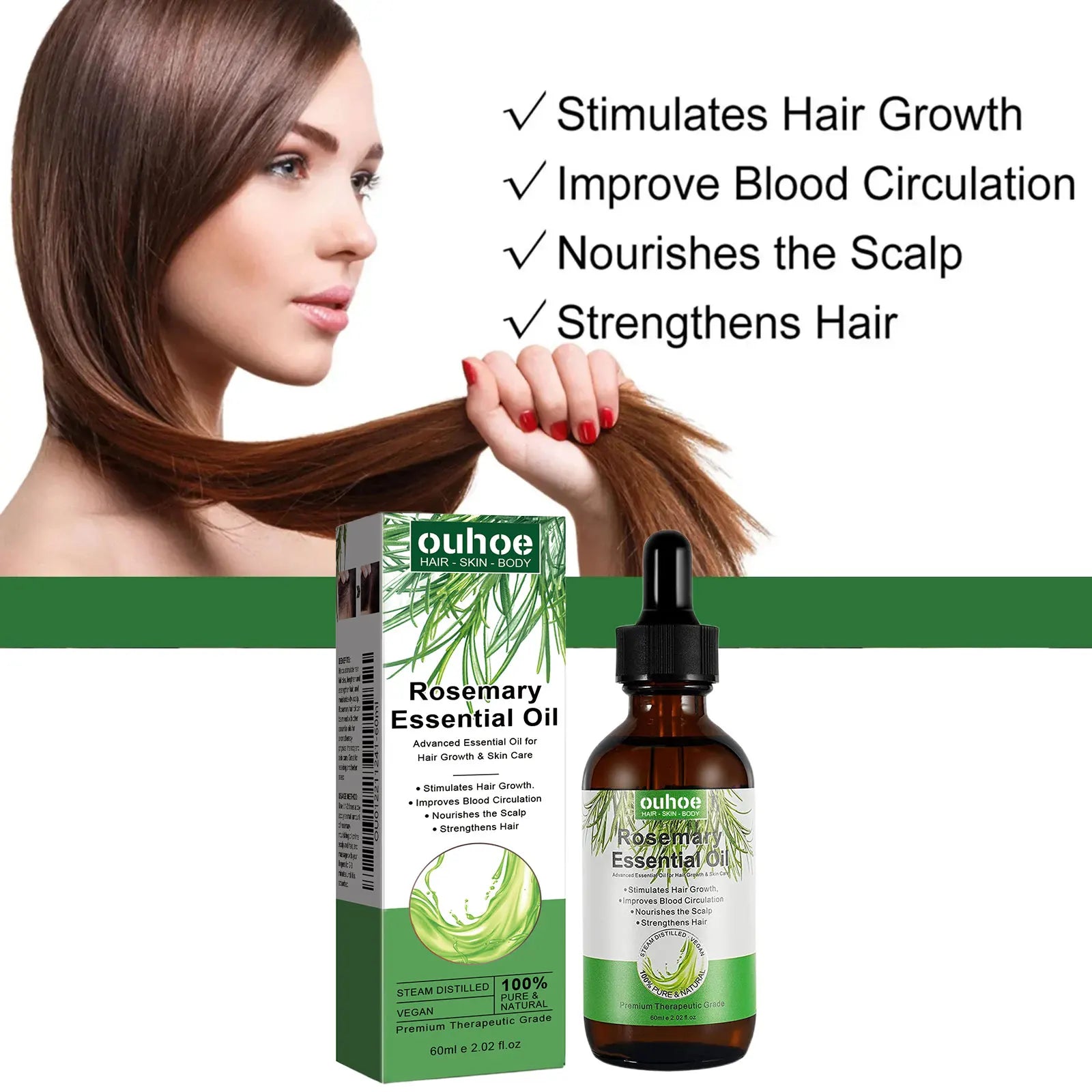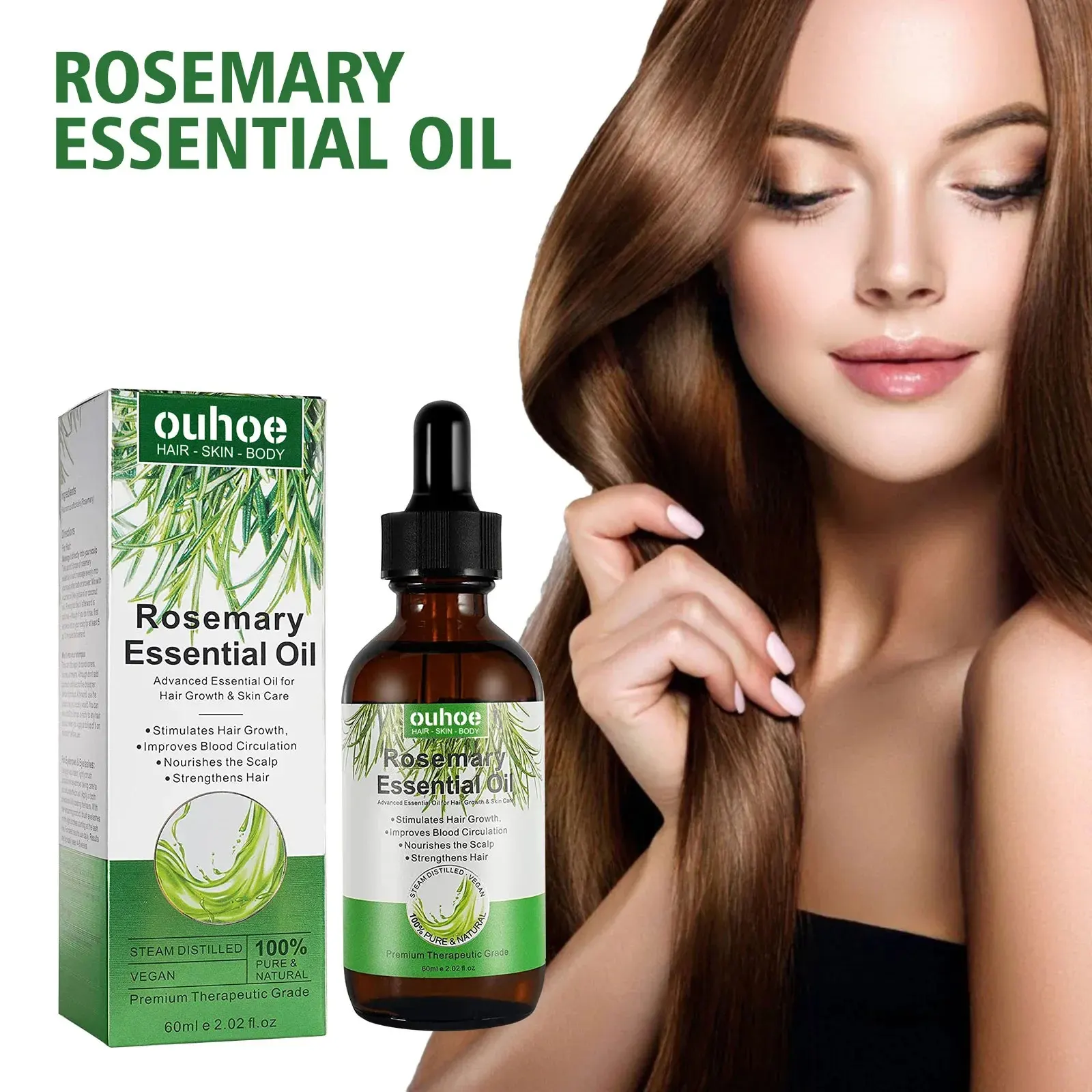 OUHOE Rosemary Hair Growth Oil Anti-frizz Dandruff Treatment Scalp Damaged Nourishing Anti Hair Loss Serum Pure Rosemary Essential Oil 60ml