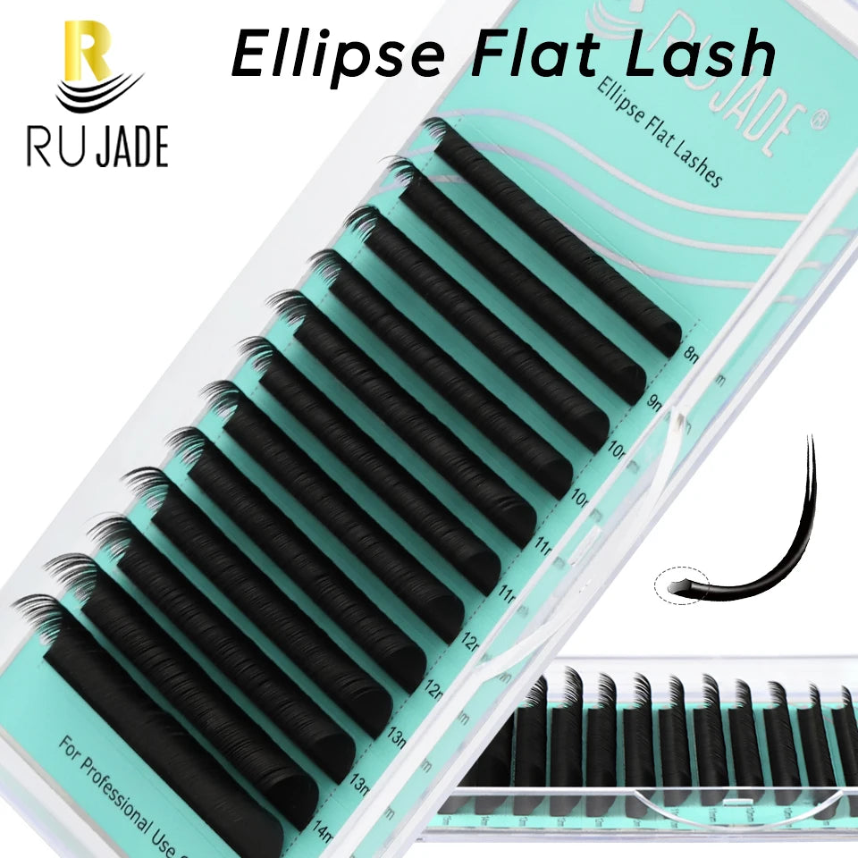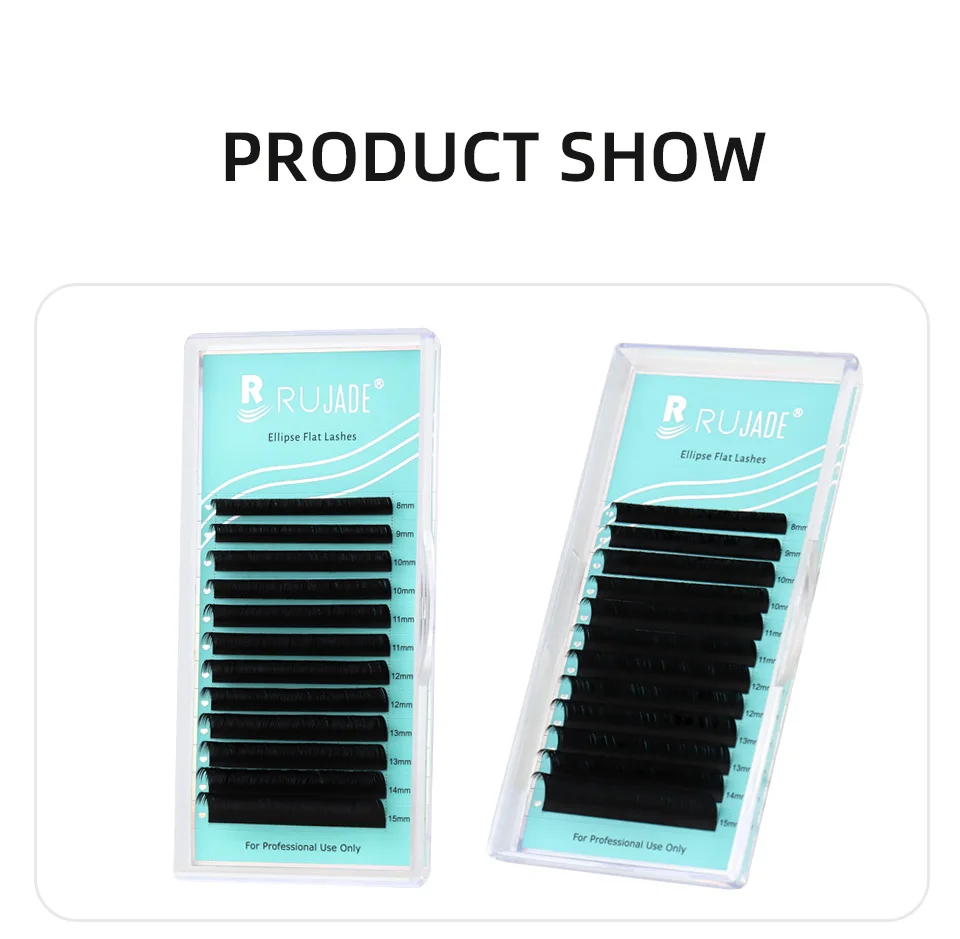 RUJADE Flat Ellipse Eyelash Split Tips Matte Black Super Soft Individual Eyelash 0.15 0.20 Single Classic False Eyelash Supplies