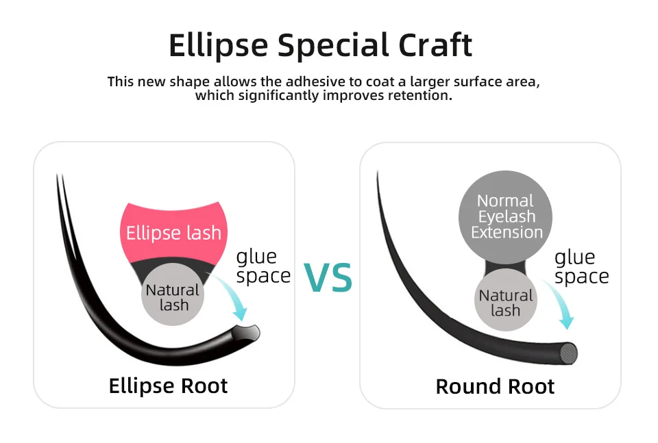 The root has special shape, longer lasting time, by bigger contact area.Do you have a client who wasn't blessed with the thickest of natural lashes but LOVES the thick classics look? Ellipse lashes are PERFECT for them!