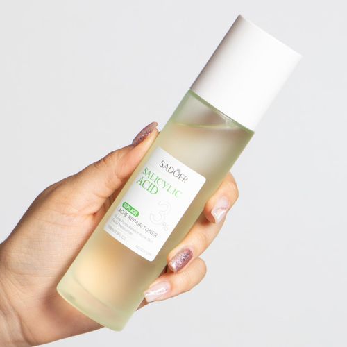 The SADOER Salicylic Acid Acne Package is a skincare set designed to treat and repair acne-prone and oily skin. The main ingredients include salicylic acid, which helps unclog pores, and niacinamide and Centella asiatica to brighten and soothe the skin.