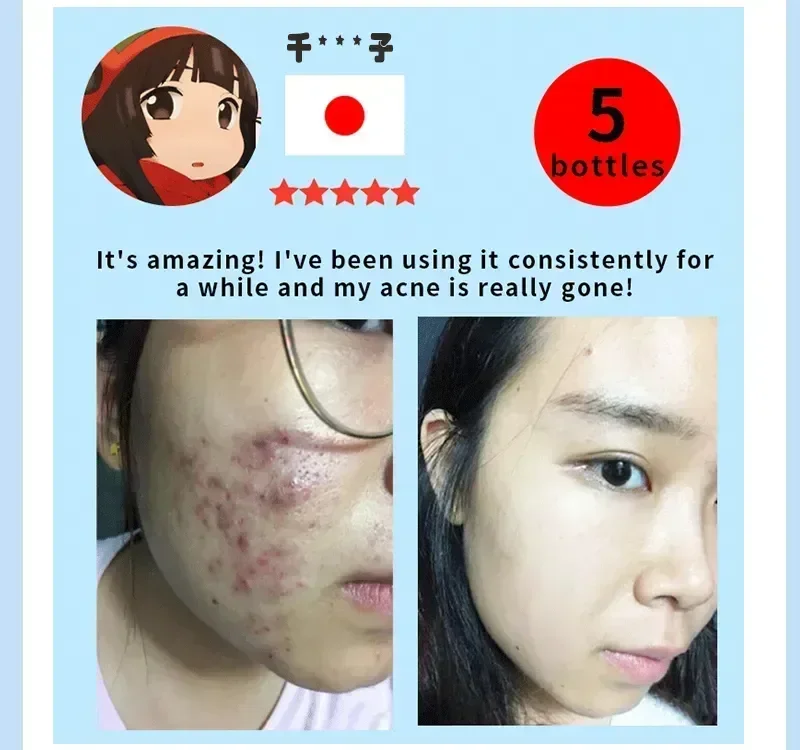 【Use 5 bottles 】Acne marks can also be quickly eliminated, restoring beauty and regaining self-confidence.