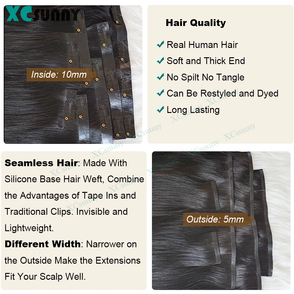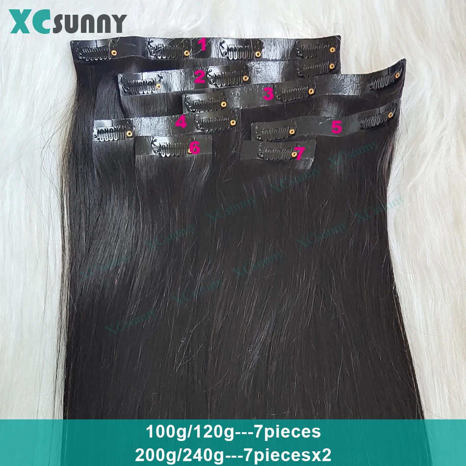 Seamless Straight Clip Ins Human Hair PU Clip In Hair Extensions Human Hair Double Drawn Skin Weft Clip In For Women 100g-240g