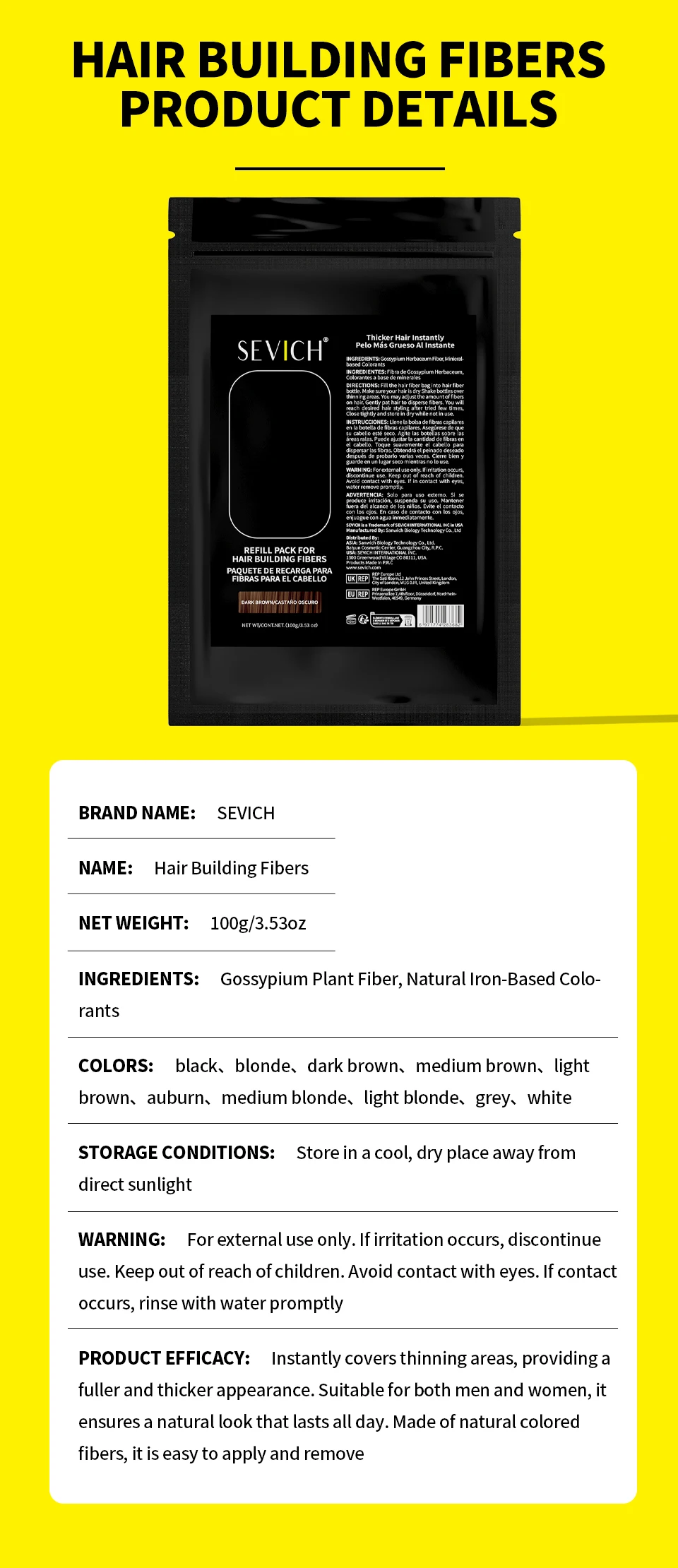 Sevich 100g Hair Fibers Refill Bag Keratin Instant Hair Growth Powder Hair Building Fiber Hair Regrowth Powder Hair Loss Product