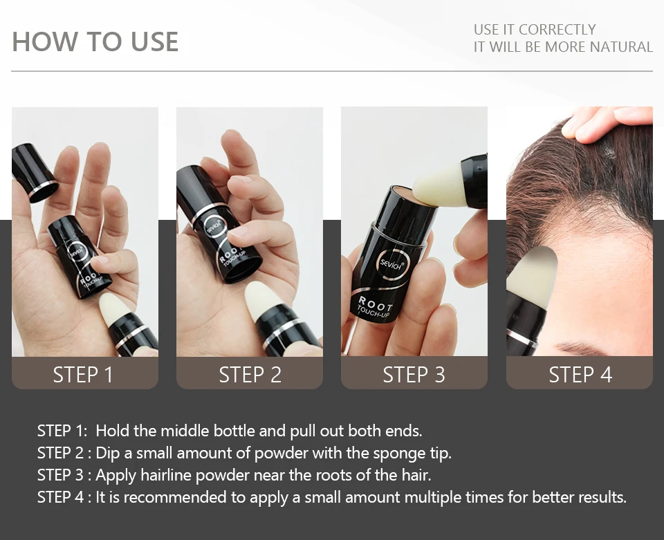 It is used for filling the hairline,fulling your hairstyle and covering your white hair.