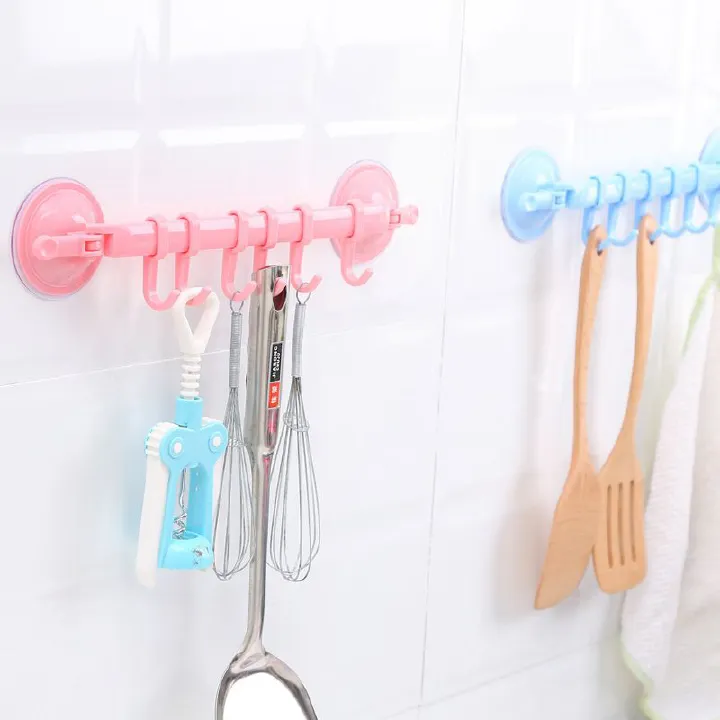 Six-link sucker hook punching-free bathroom bathroom door towel rack clothes hook