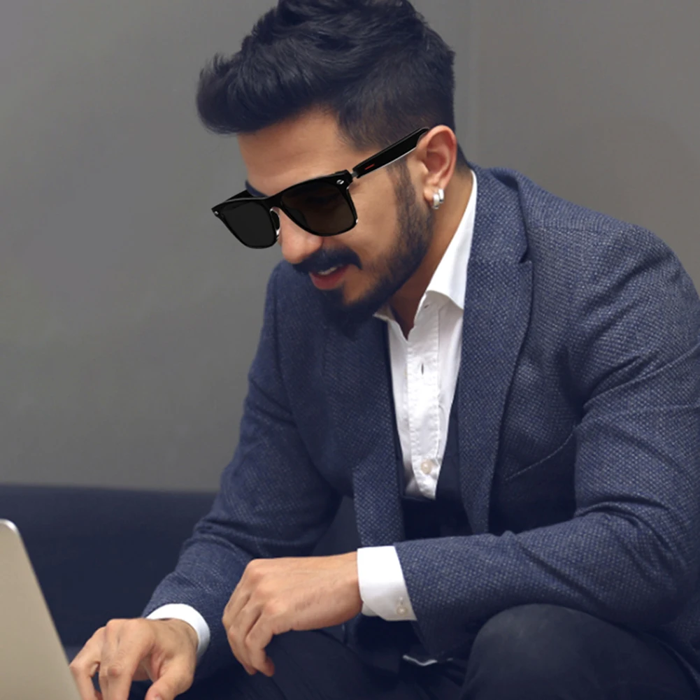 1. Wireless Audio Experience: These smart glasses feature wireless speaker connectivity with a dynamic driver and unique cavity design, providing an immersive audio experience without damaging your hearing. The in-ear design allows you to stay aware of your surroundings while enjoying music. Specification: Origin: Mainland China Size: 170.00x60.00x56.00mm/6.69x2.36x2.2inch Connection: BT Material: Metal Touch control, more comfortable operation: 1. Long press 3s/5s on/off 2. Long press 2s voice assistant 3. Click twice to remote control photo taking 4. Click 4 times to change between Chinese and English 5. Click once to answer/hang up 6. Click on the left/right twice to reduce volume/increase volume