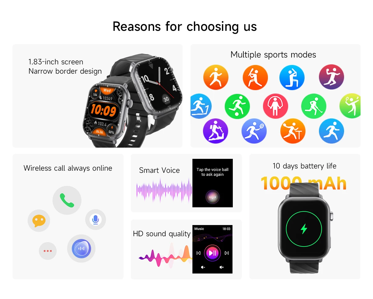 Smart Watch 2025 1.83-inch Screen 1000mAh Large Battery Capacity Bluetooth Calling 100+ Sport Modes Men Women Smartwatch Gifts