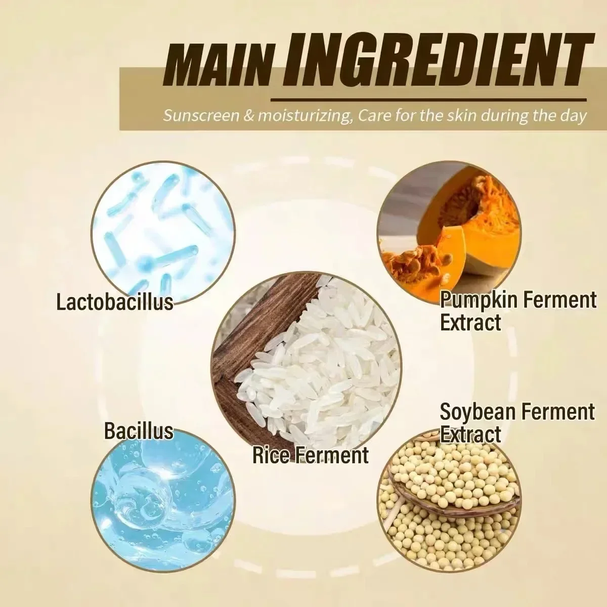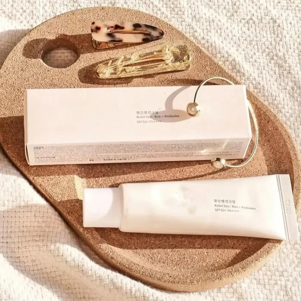 SPF50+ Sunscreen Korean Rice Probiotic Solar Blocker Skin Whitening Cream Anti UV Sun Block Facial Mild Moisturizer Serum 50ml