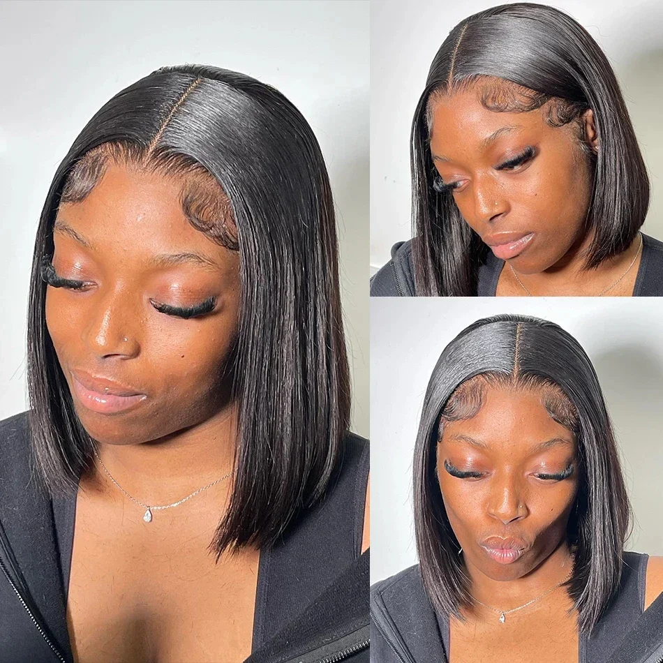 Straight Short Bob Wigs 13x4 Human Hair Lace Frontal Wigs 200% Remy Pre Plucked Transparent Lace Short Bob Wigs For Women 14inch