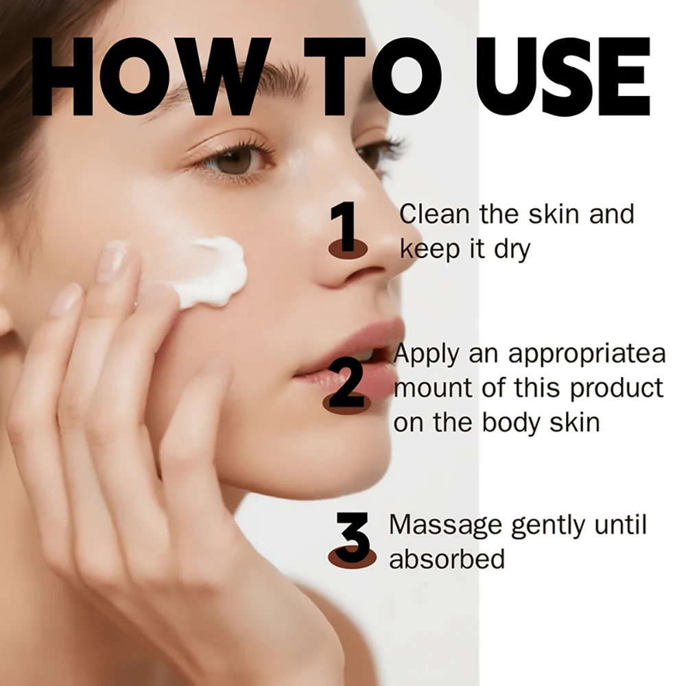 Clean your face. Apply a thin layer to your face,gently massaging with an up ward motion.until it becomes fully absorbed.Persisting in daily use can achieve better results.