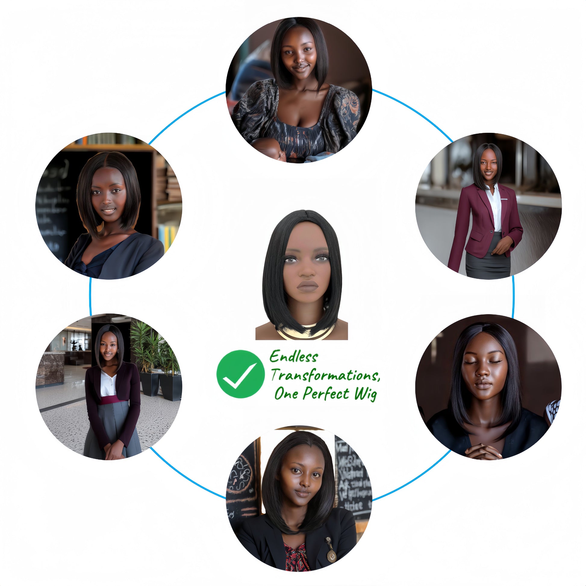 Synthetic Straight Bob Wigs - 12 Inch | 180% Density Natural Look(1B Black, Gift)