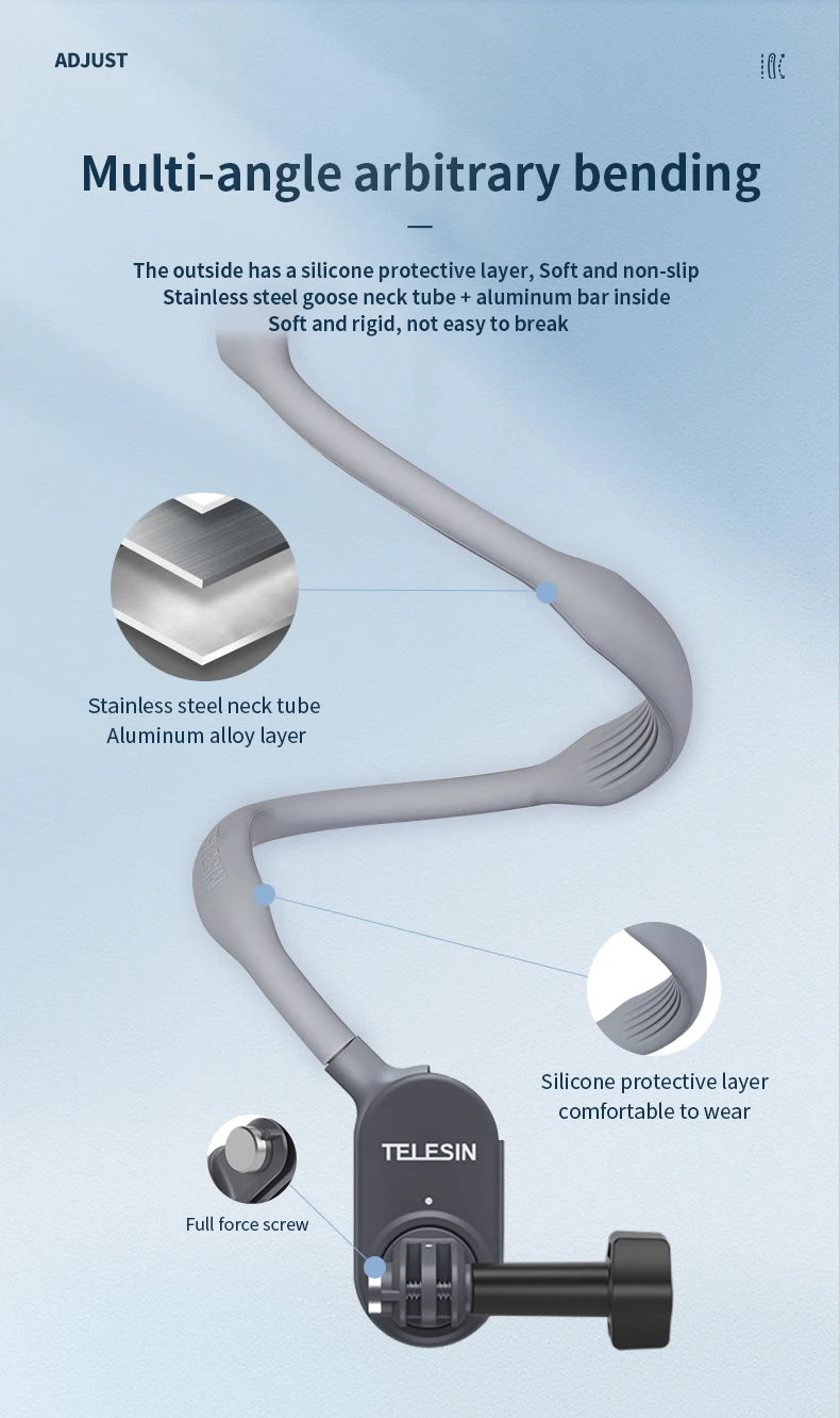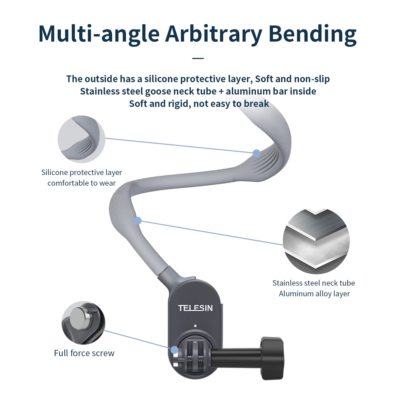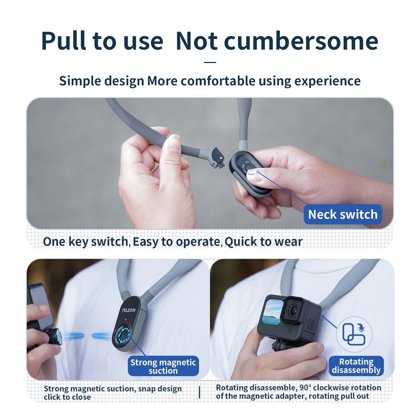 TELESIN Neck Hold Mount for GoPro Hero 13 12 11 10 9 8 7 6 5 Insta360 DJI Osmo Action Smartphone Magnetic GoPro Accessories