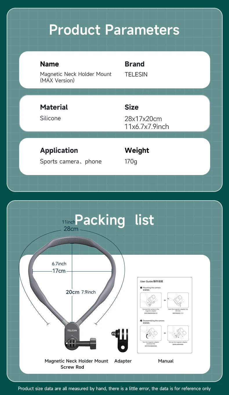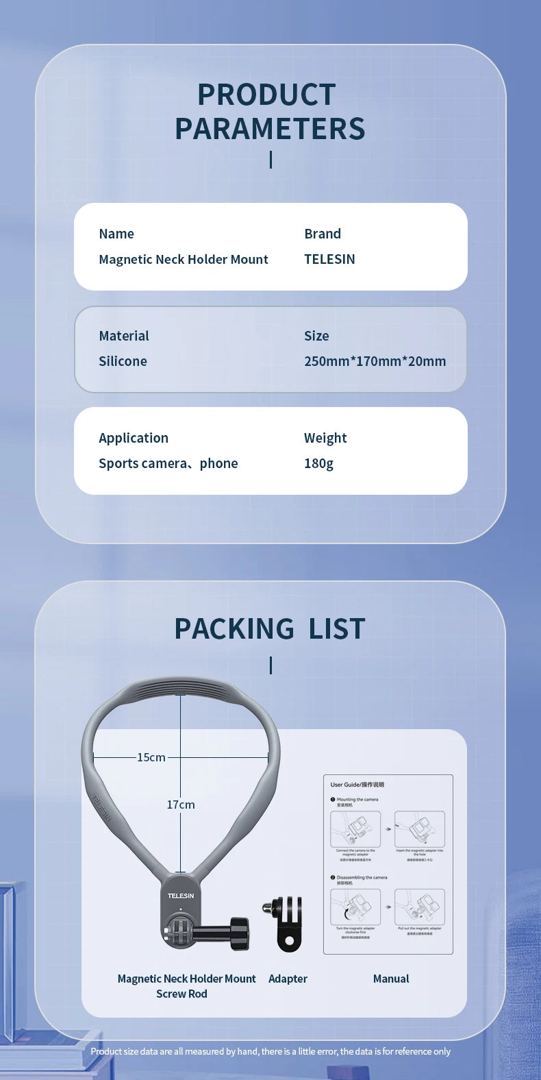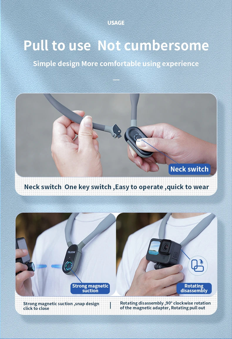 TELESIN Neck Hold Mount for GoPro Hero 13 12 11 10 9 8 7 6 5 Insta360 DJI Osmo Action Smartphone Magnetic GoPro Accessories