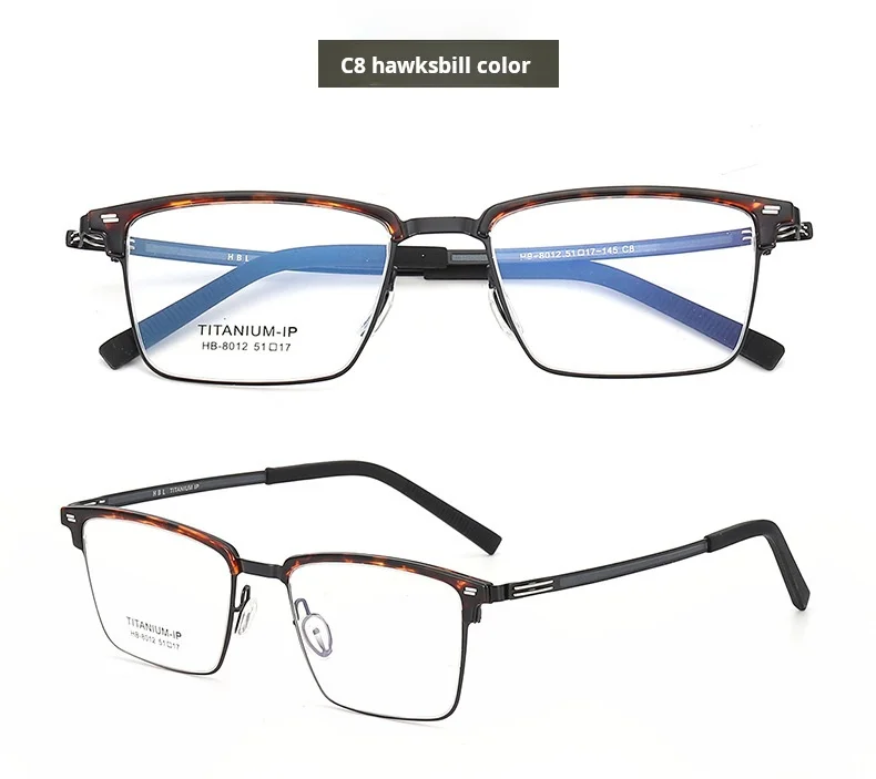 TFTB Luxury Pure Titanium Men's Glasses Square Screwless Design Stylish Ultra-light Optical Prescription Eyeglasses Frame 8012