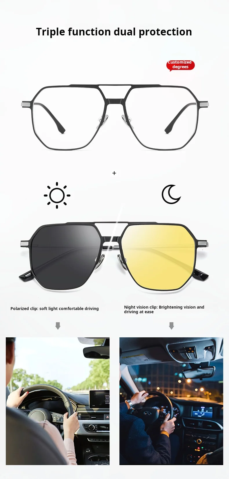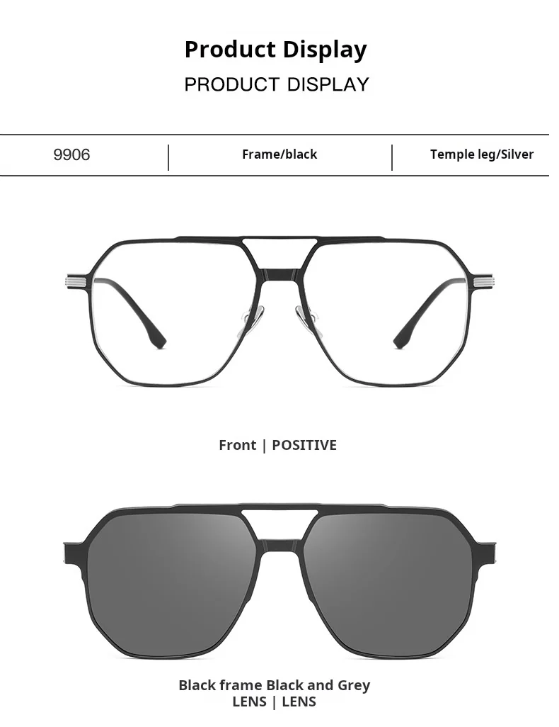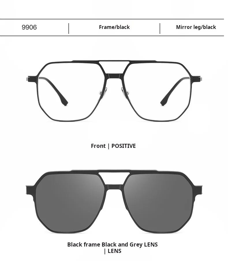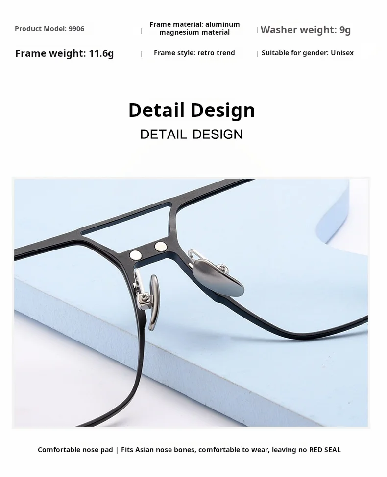 TFTB Men and Women Polarized Magnetic Clip on Glasses Luxury Pure Titanium Pilot Big Optical Prescription Eyeglasses Frame 9906