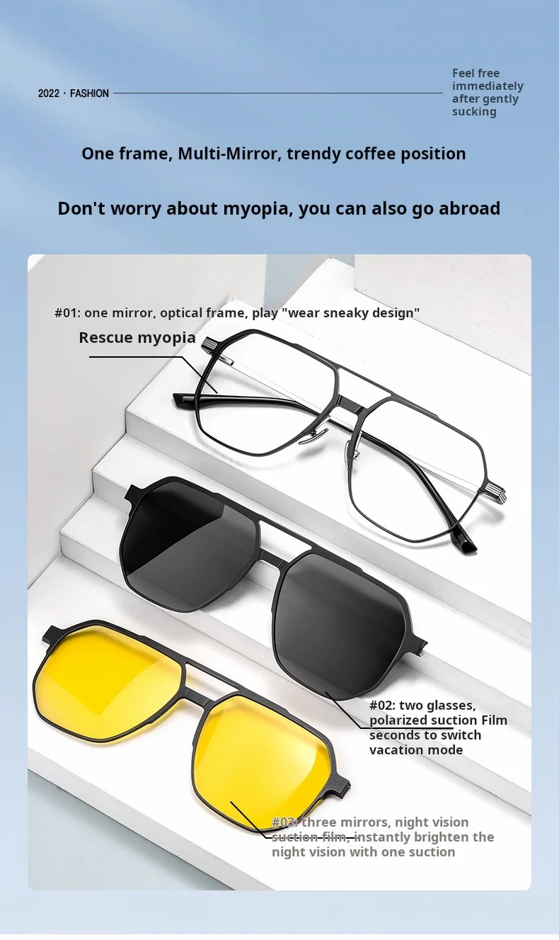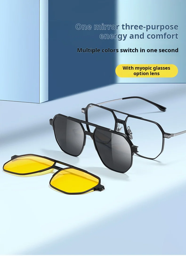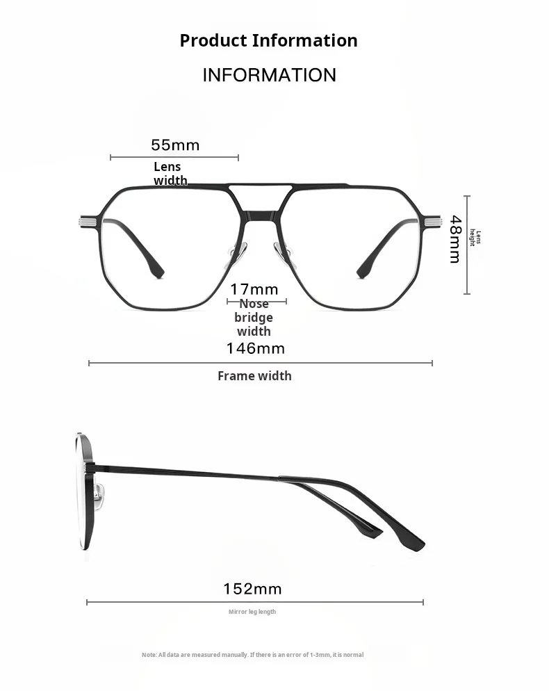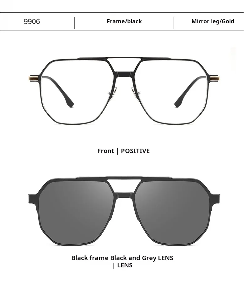 TFTB Men and Women Polarized Magnetic Clip on Glasses Luxury Pure Titanium Pilot Big Optical Prescription Eyeglasses Frame 9906