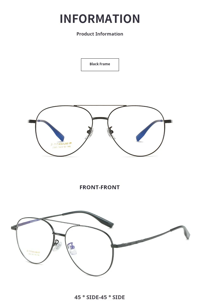 TFTB Titanium Fashion Pilot Men Glasses Ultra Light Flexible Trendy Women Eyewear Optical Prescription Eyeglasses Frame 142mm