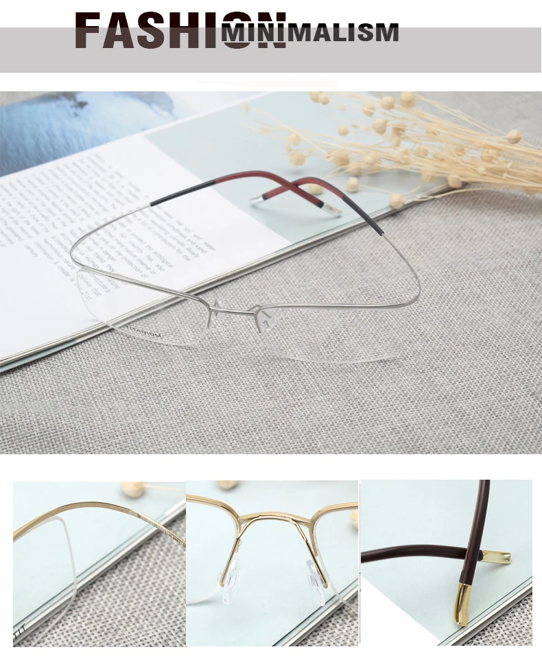 Titanium Eyewear Men's Eyebrow Semi-Frameless Ultralight 6g Glasses Frame Myopia Hyperopia Progressive Men Optical