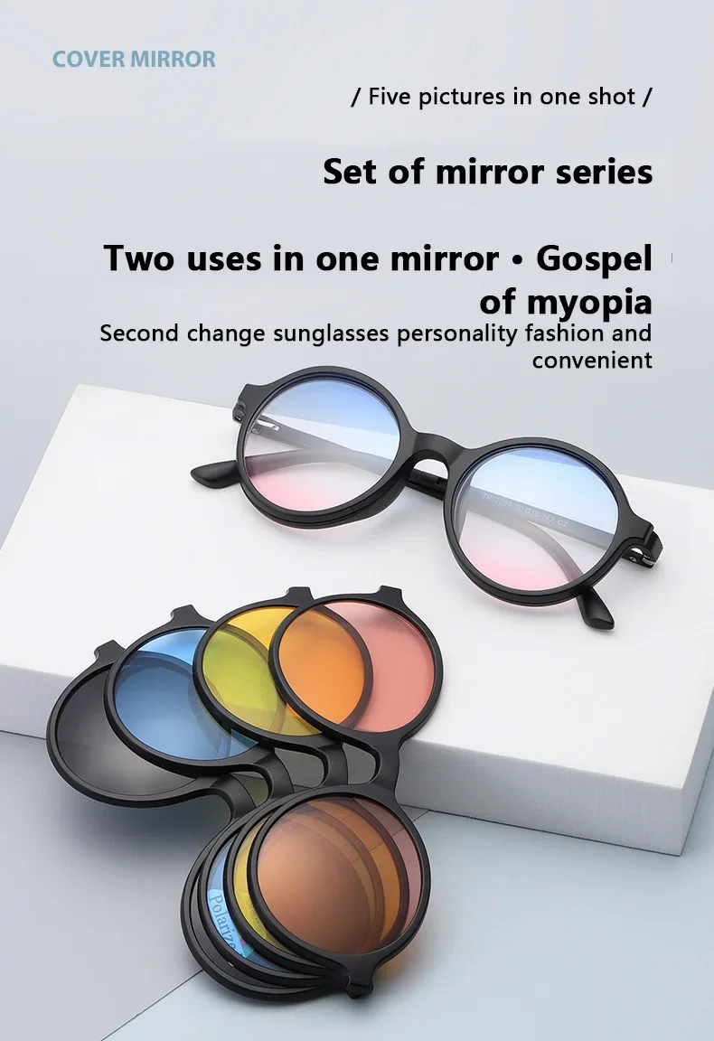 TR90 Frame Fashion Ladies Polarized Reading Sunglasses Magnetic Suction a Variety Clip Sets Mirror Night Vision Goggles Men