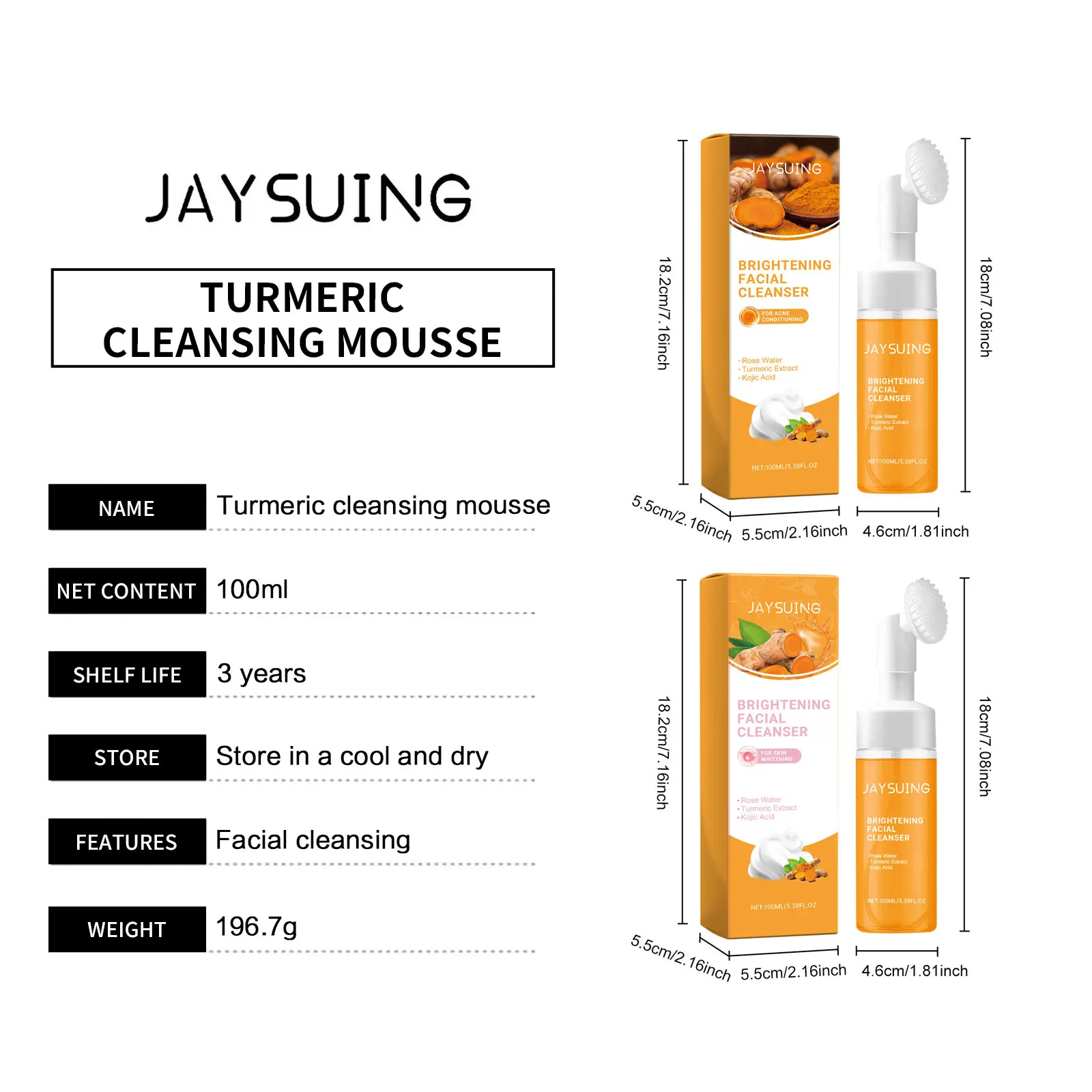 Jaysuing Turmeric Face Wash Cleanser Cleansing Mousse Shrink Pores Oil Control Blackhead Removal Brightening Exfoliating Facial Wash Foam 100ml