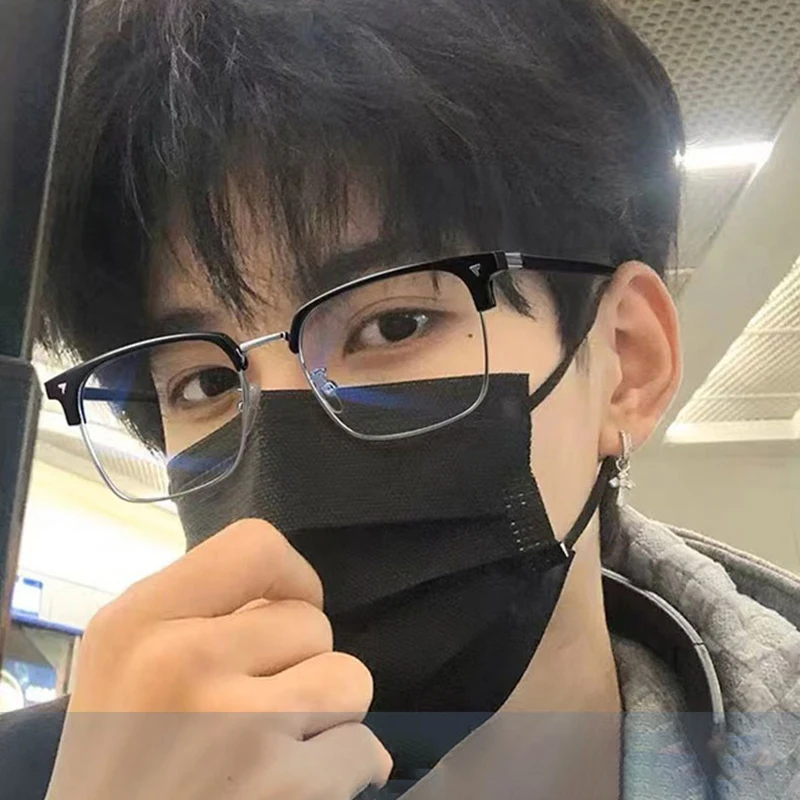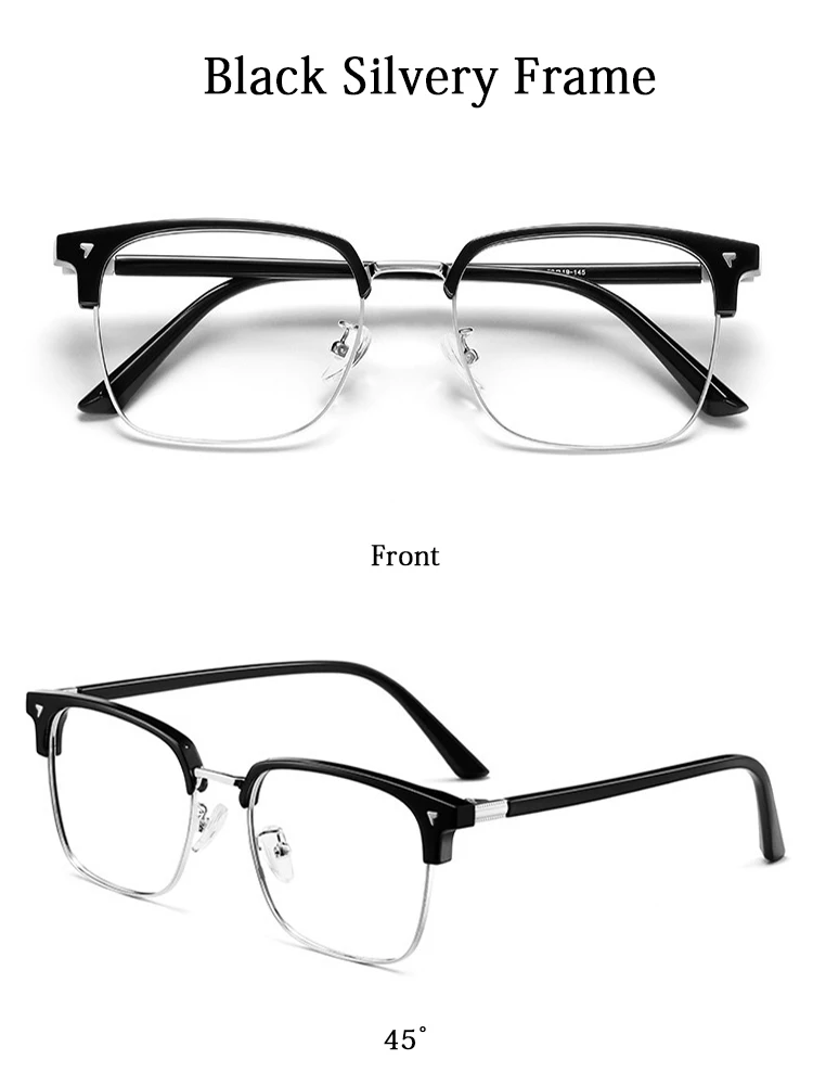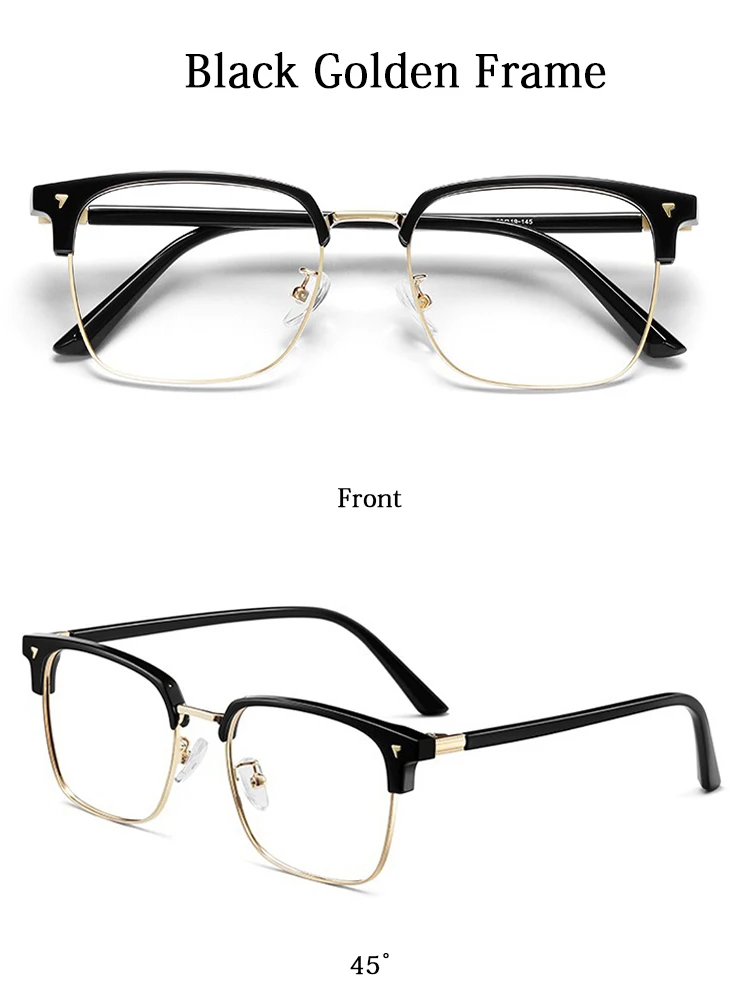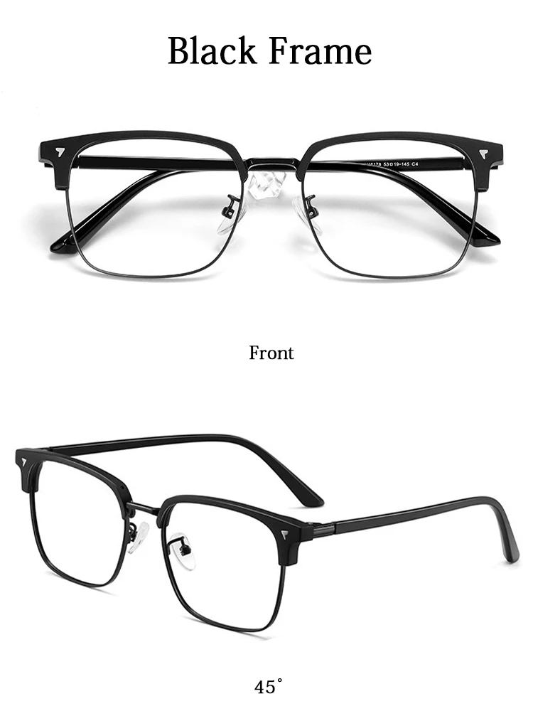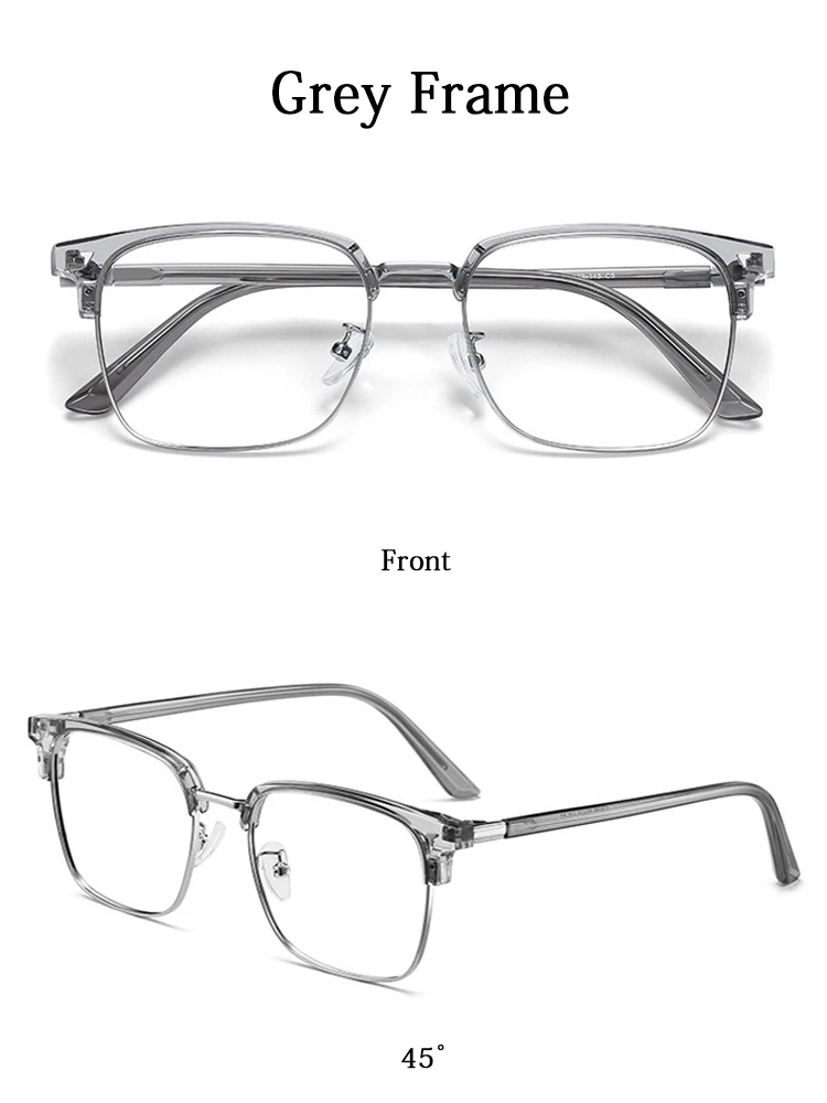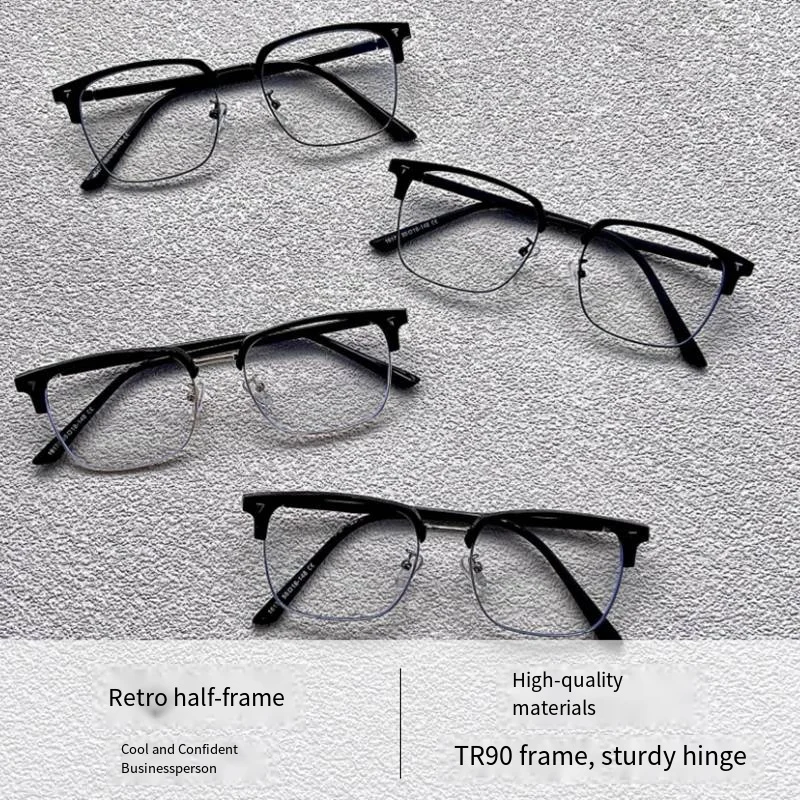 Ultra-light Flexible TR90 Half Spectacles Frame Men Metal Square Frame Anti Blue Light Transparent Lens Optical Eyeglasses